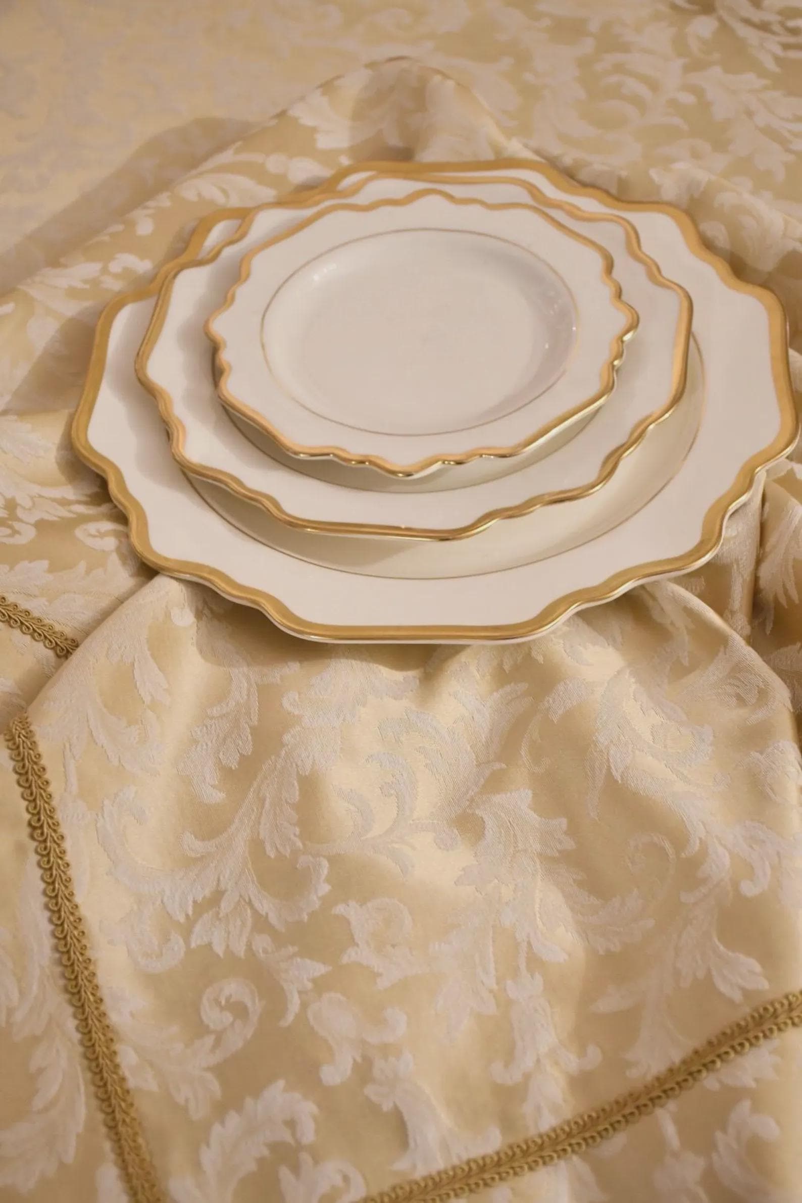 Elegant tablecloth in Italian brocade cotton satin.