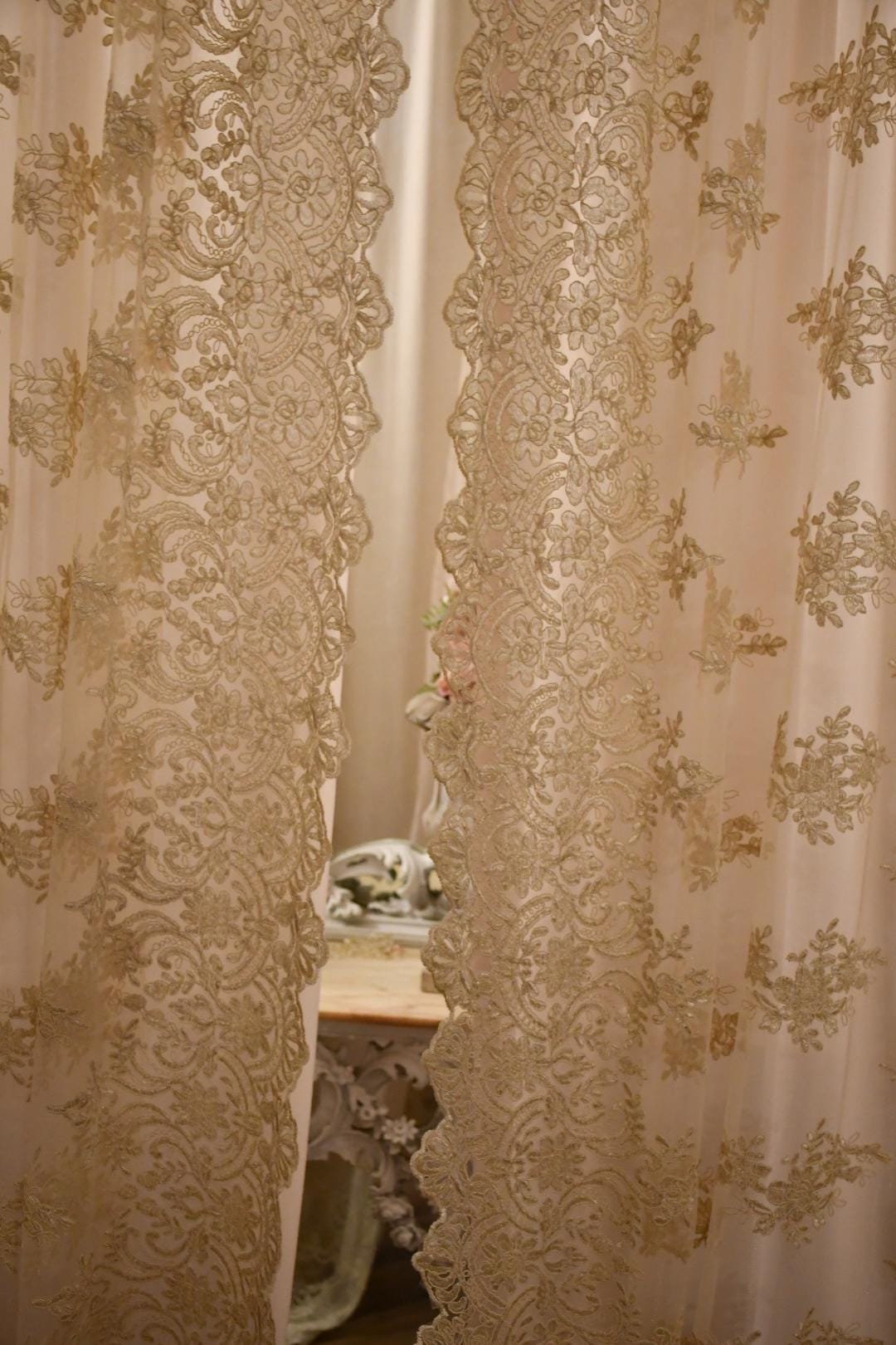 I’m in love with these lace curtains. I’ve purchases 4 panels. So elegant!
