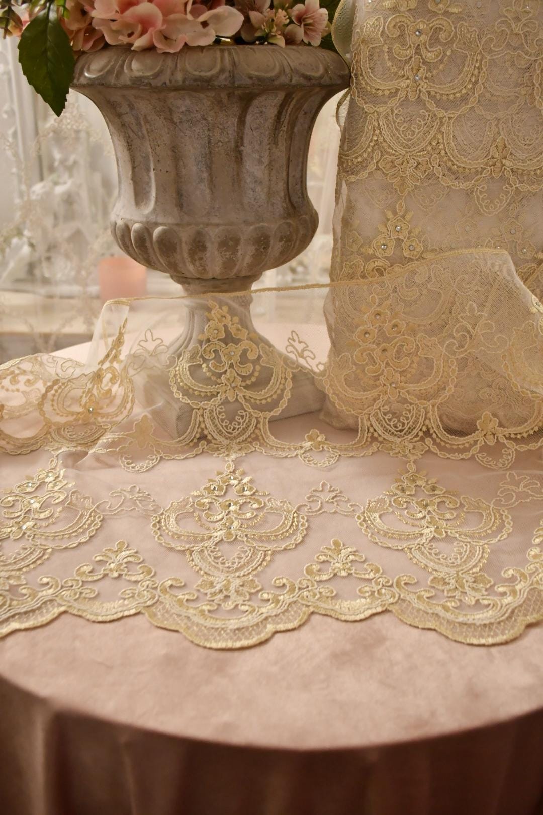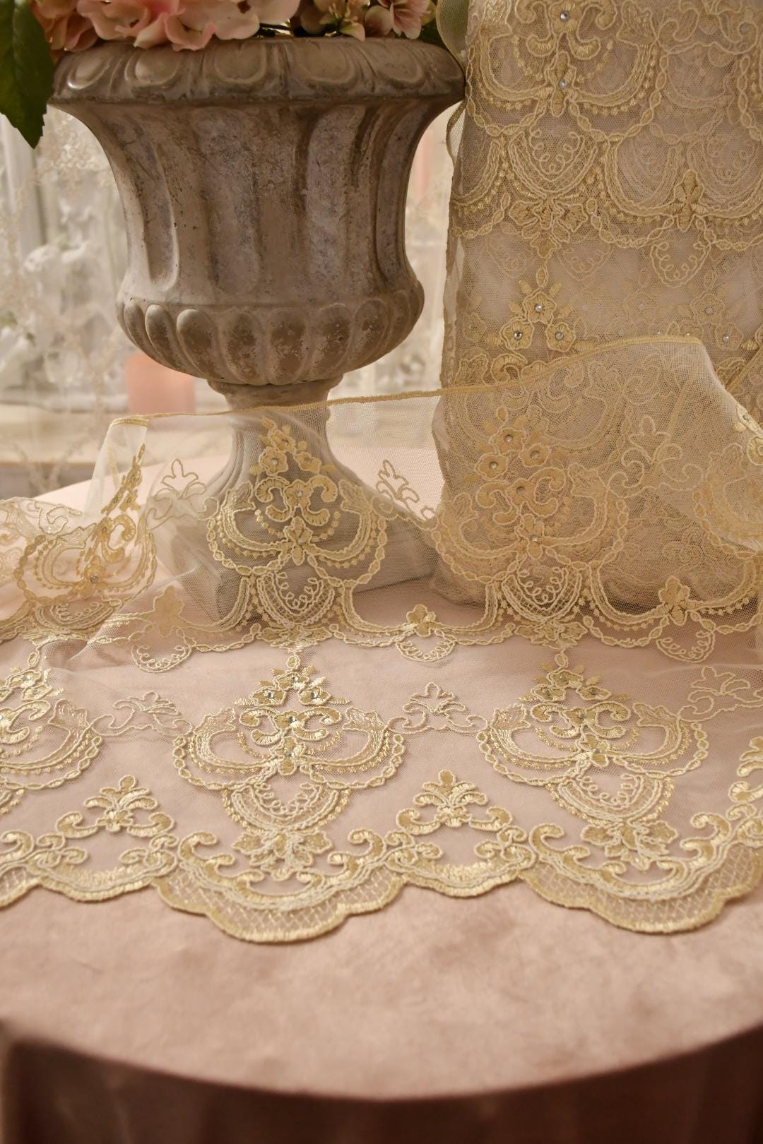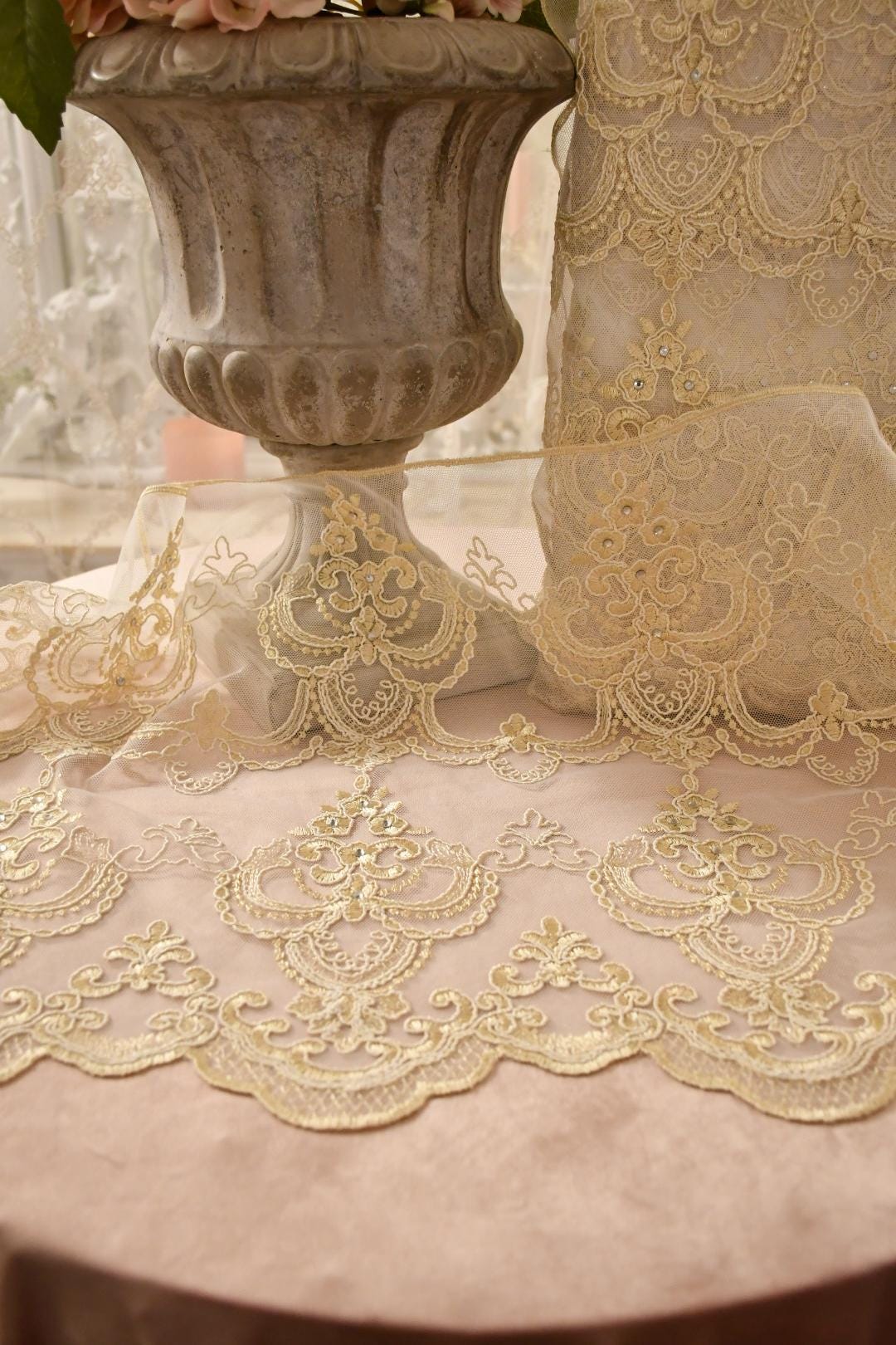 Elegant Italian lace for making anything for the home and clothing.