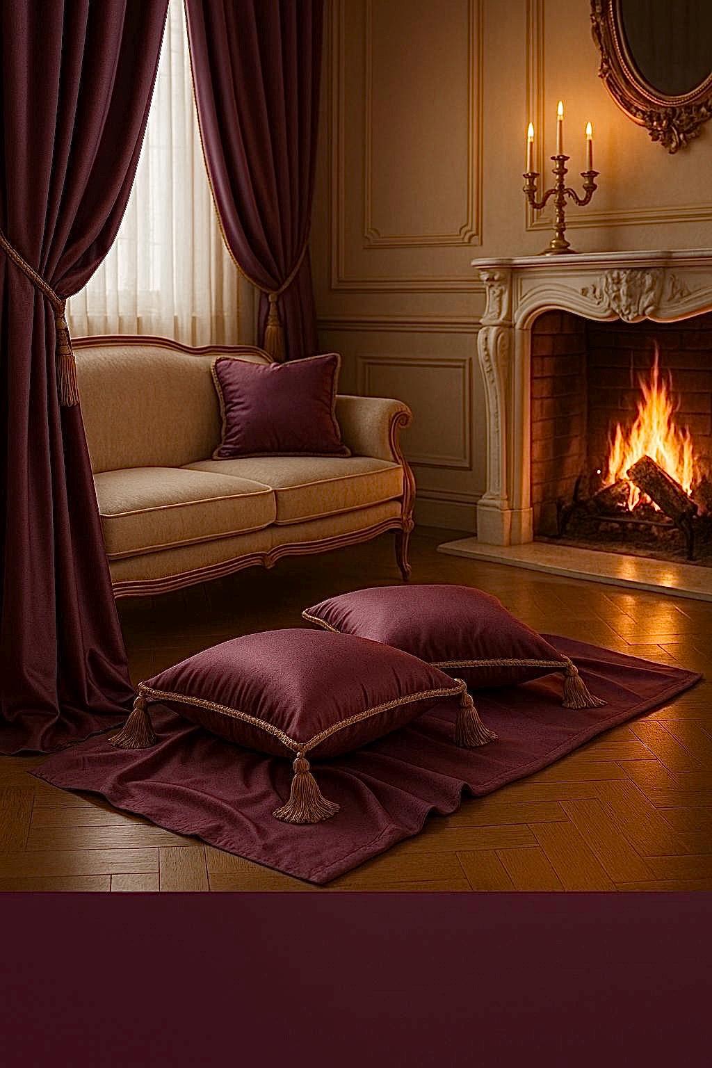 These luxurious pillows, crafted from exquisite cathedral purple silk satin, are adorned with gold trim for a timeless elegance. The four gold bows on the sides add a touch of opulence, making them a distinctive and sophisticated furnishing accessory. A model without bows is also available. Cathedral purple, a key color in 2025 trends in both furnishings and fashion, lends these pillows a modern and regal appeal. THE PRICE IS FOR ONE COVER WITHOUT INTERIOR.
