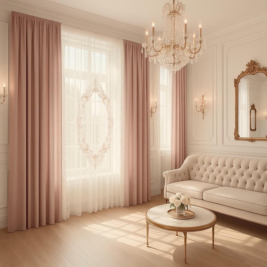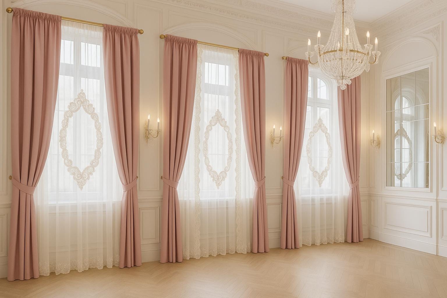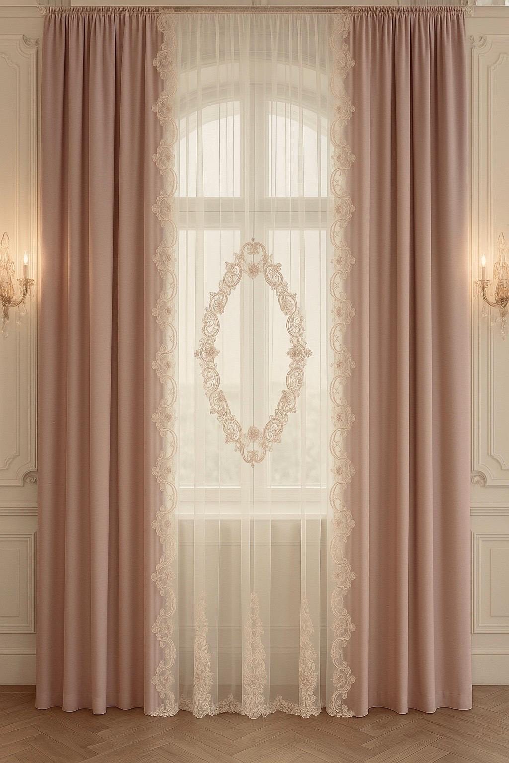 • Rebrodé lace is a fine type of lace, characterized by slightly raised ornamental motifs, including baroque scrolls, stylized flowers, and harmonious curls. Its elegant, structured texture gives visual depth and a refined effect to the entire curtain.