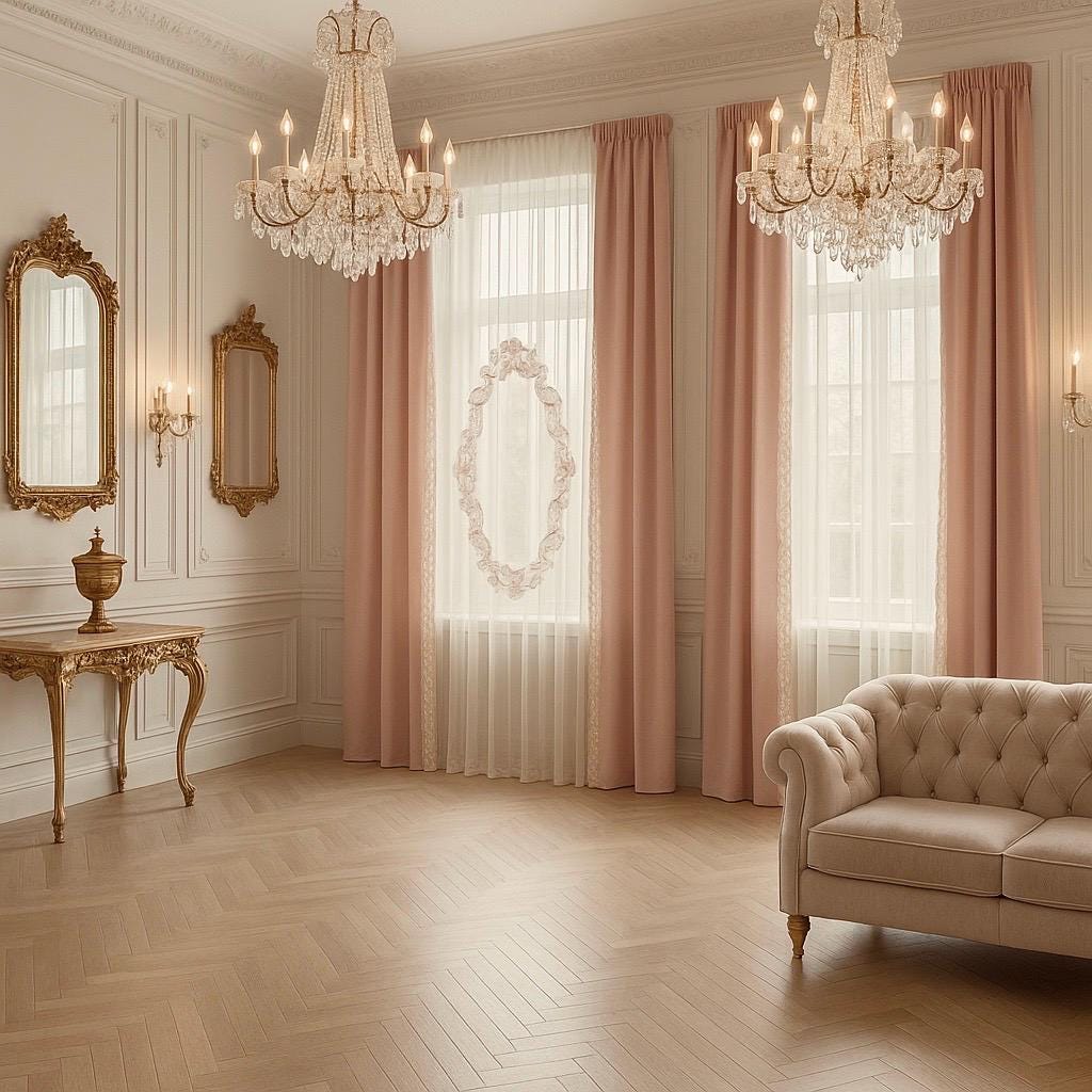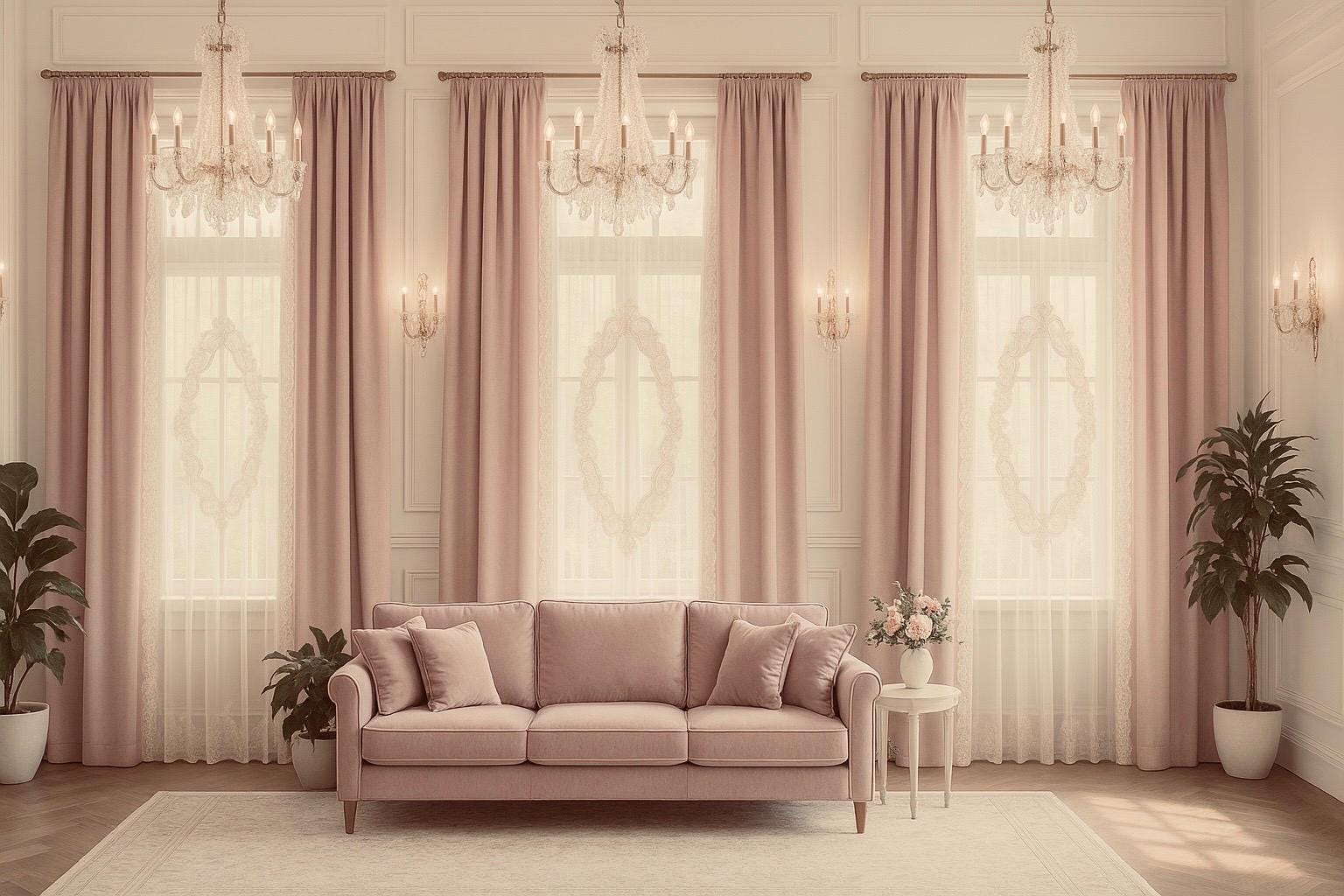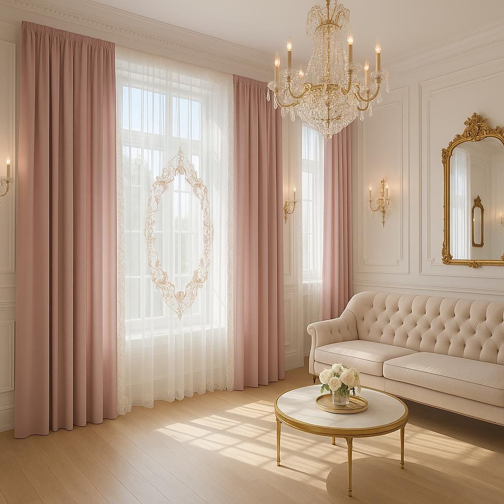 • Rebrodé lace is a fine type of lace, characterized by slightly raised ornamental motifs, including baroque scrolls, stylized flowers, and harmonious curls. Its elegant, structured texture gives visual depth and a refined effect to the entire curtain.