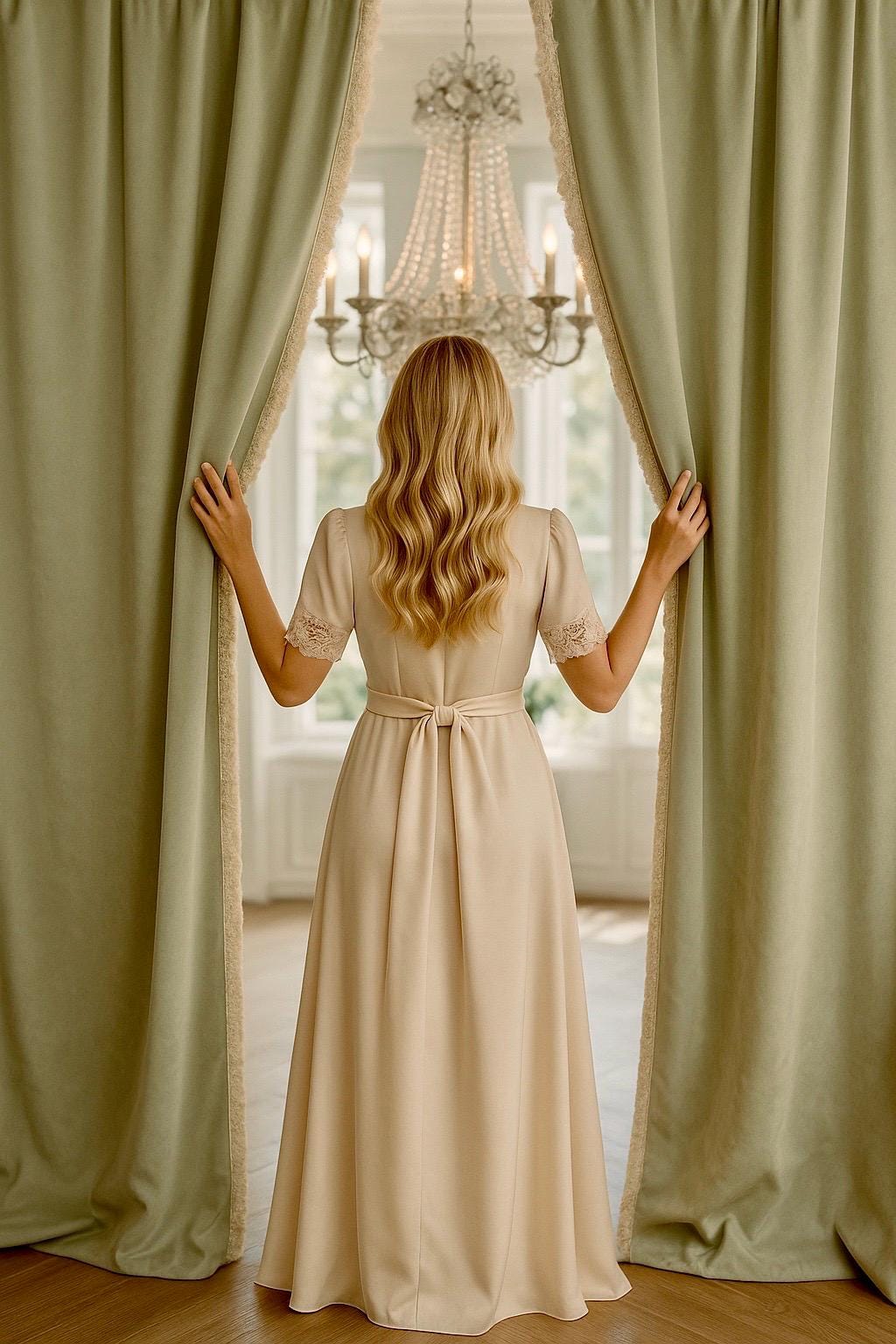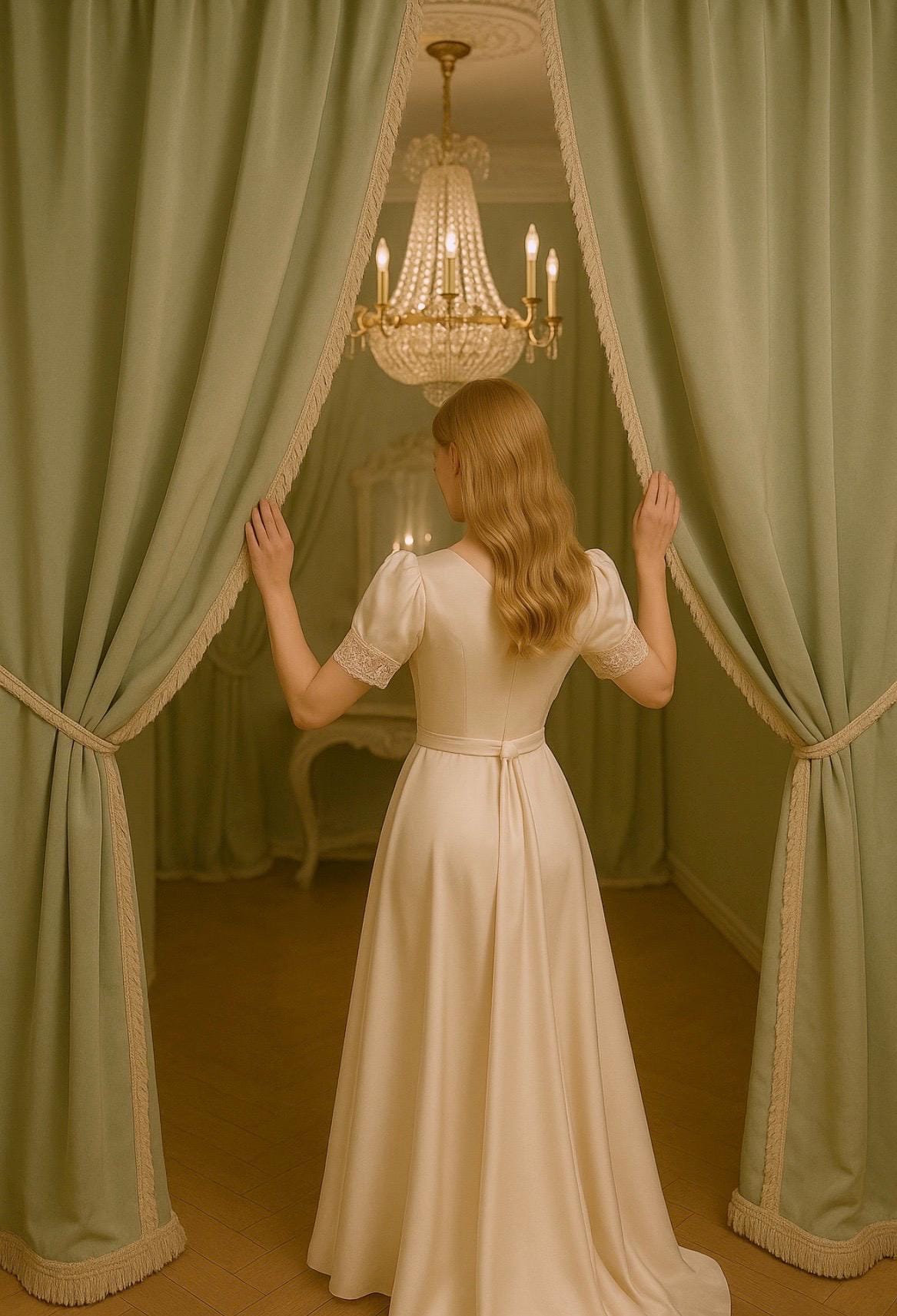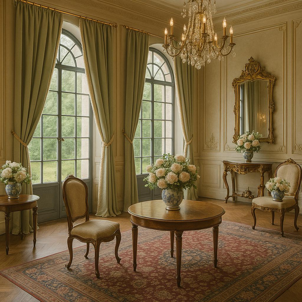 Sold as a pair (order one and receive two panels), these curtains are made from a rich, opaque, high-quality satin fabric, perfect for classic, romantic, or château-style settings. The color is a refined, light sage green, extremely luminous yet understated, designed to elegantly complement sophisticated interiors.