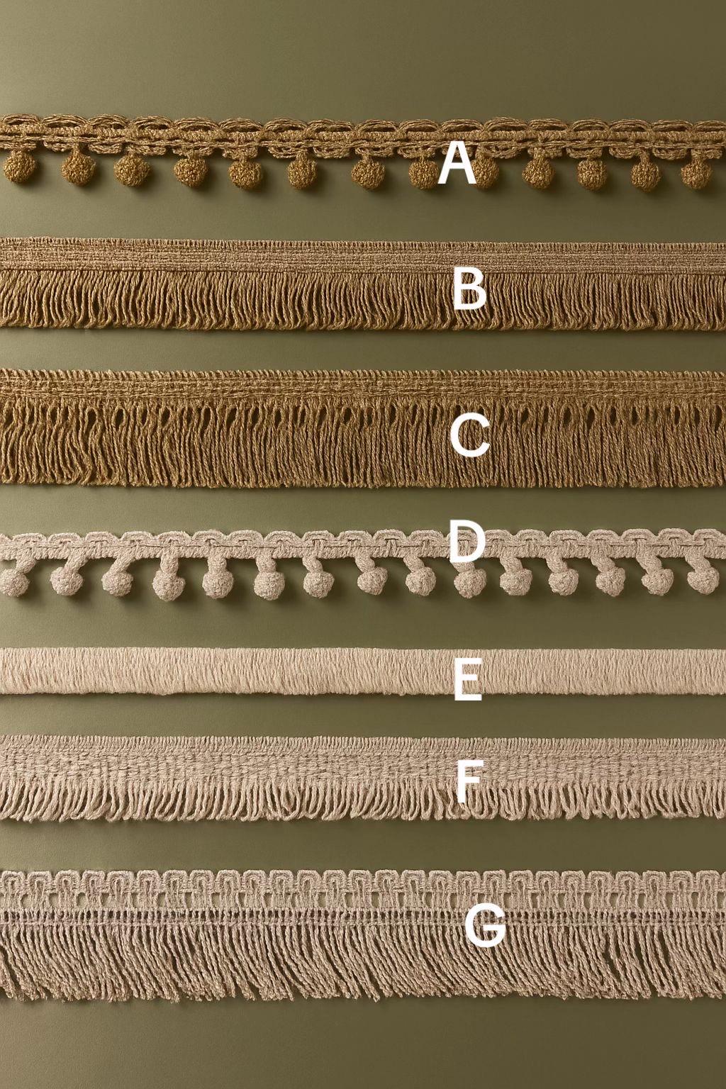 • Trimmings: choose between models from letter A to letter G (the one shown in the photos and video is E)