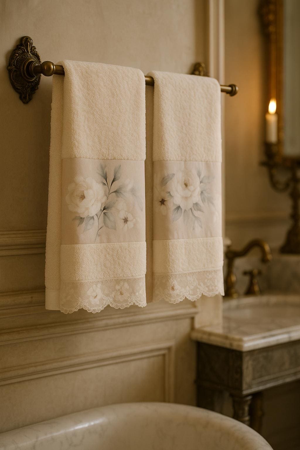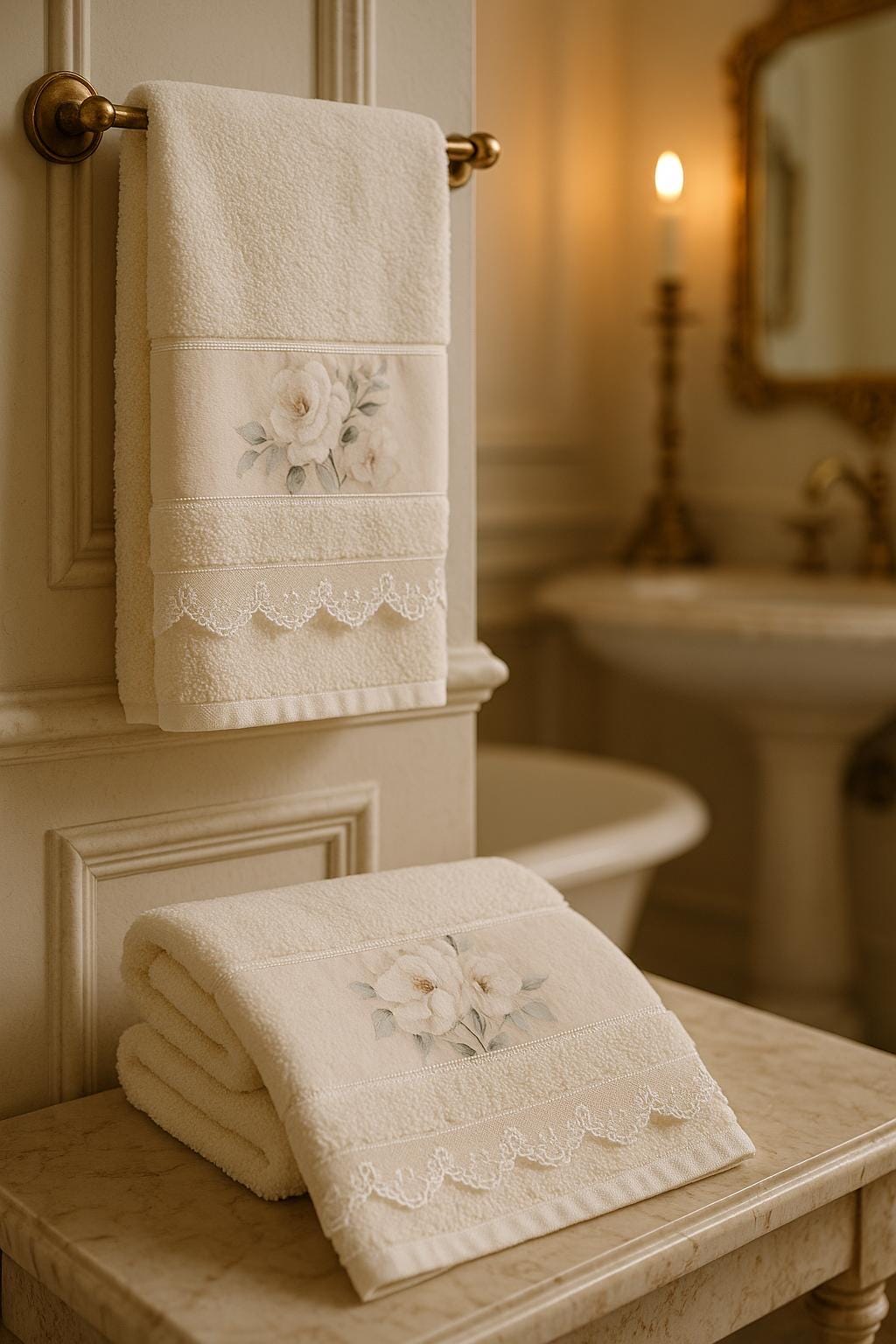 For a bathroom with a refined and elegant allure, focus on the delicate beauty of lace towels, bath linens that bring a touch of style and class to the room. These towels will be a breath of feminine elegance that your bathroom will never want to be without.