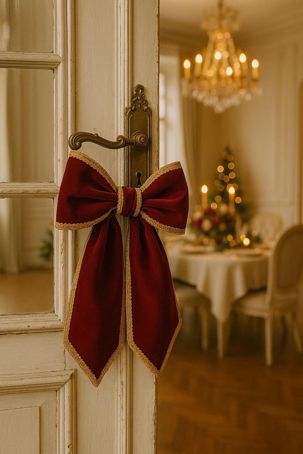 It can be placed on the Christmas tree as a stylish focal point, on a door or handle for an elegant welcome, or on a chair or fireplace to add a touch of regal charm.