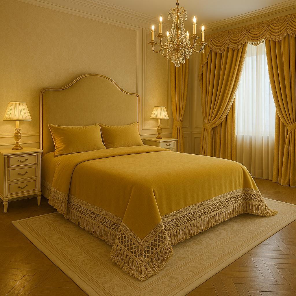 A masterpiece of timeless elegance, this aristocratic double-layer velvet bedspread evokes the atmosphere of historic noble residences.