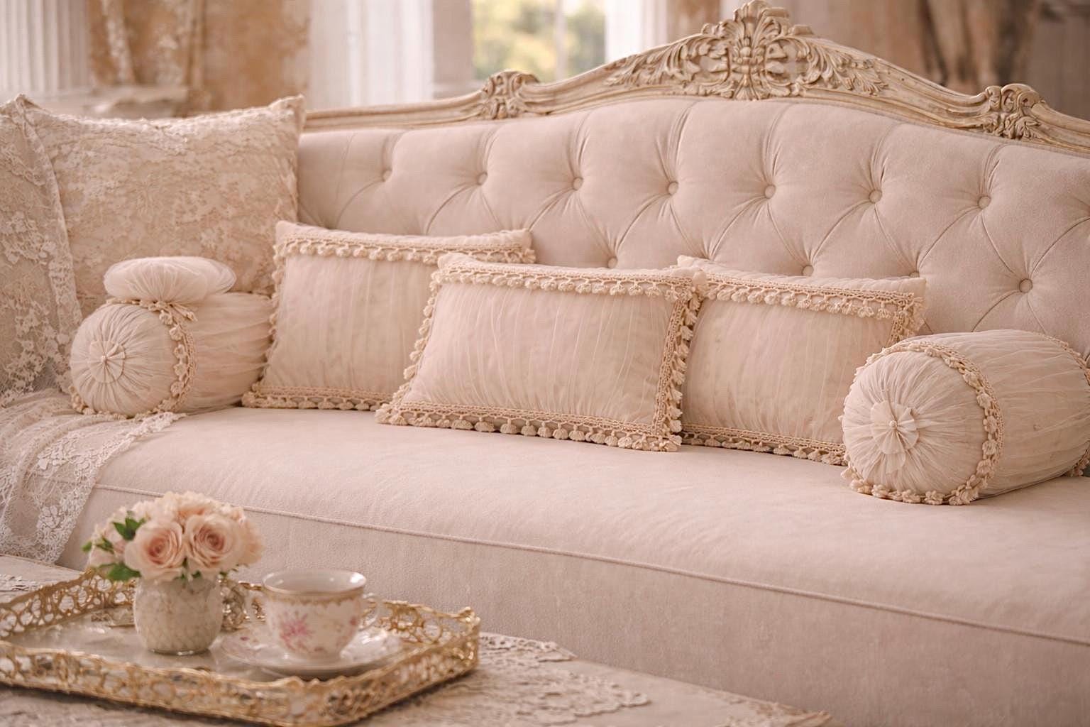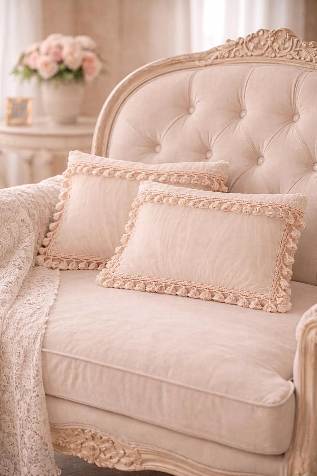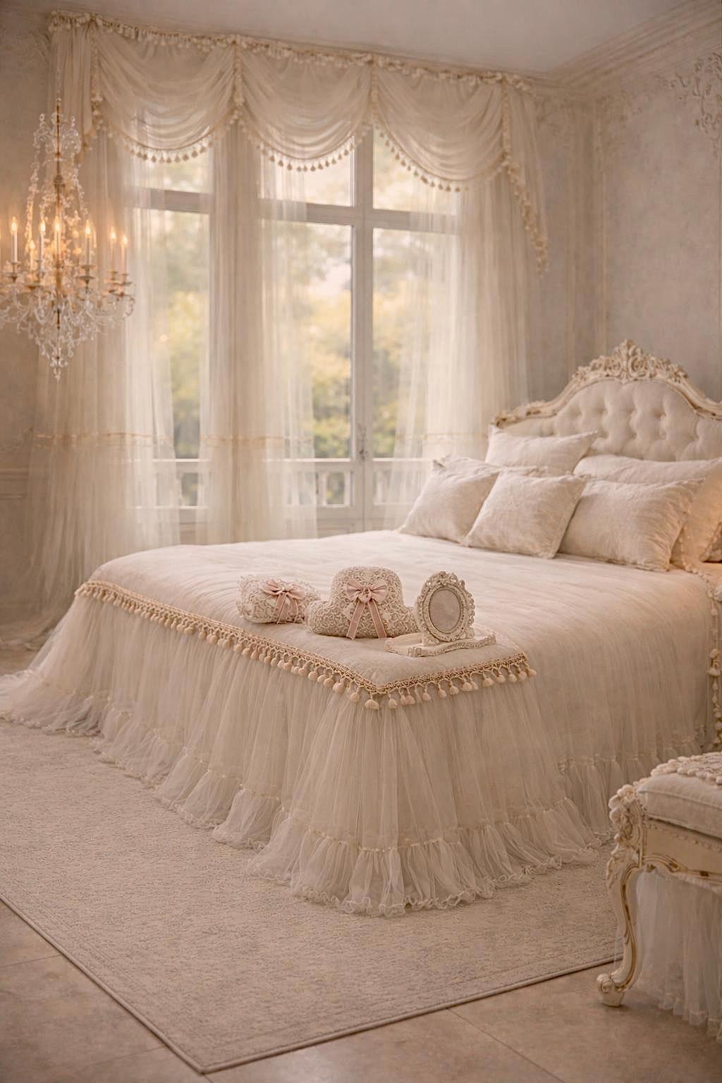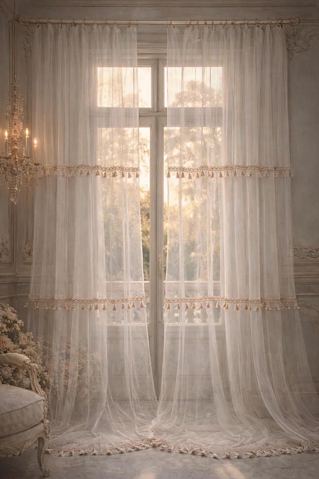 Each element may be purchased individually or combined to create a fully coordinated bespoke set, tailored to your space and personal style.The tulle used in this collection is a high-quality Italian tulle, composed of cotton and polyester. This blend is specifically chosen to prevent shrinkage and to ensure a beautiful, structured drape, allowing the fabric to fall gracefully while maintaining its elegance over time.