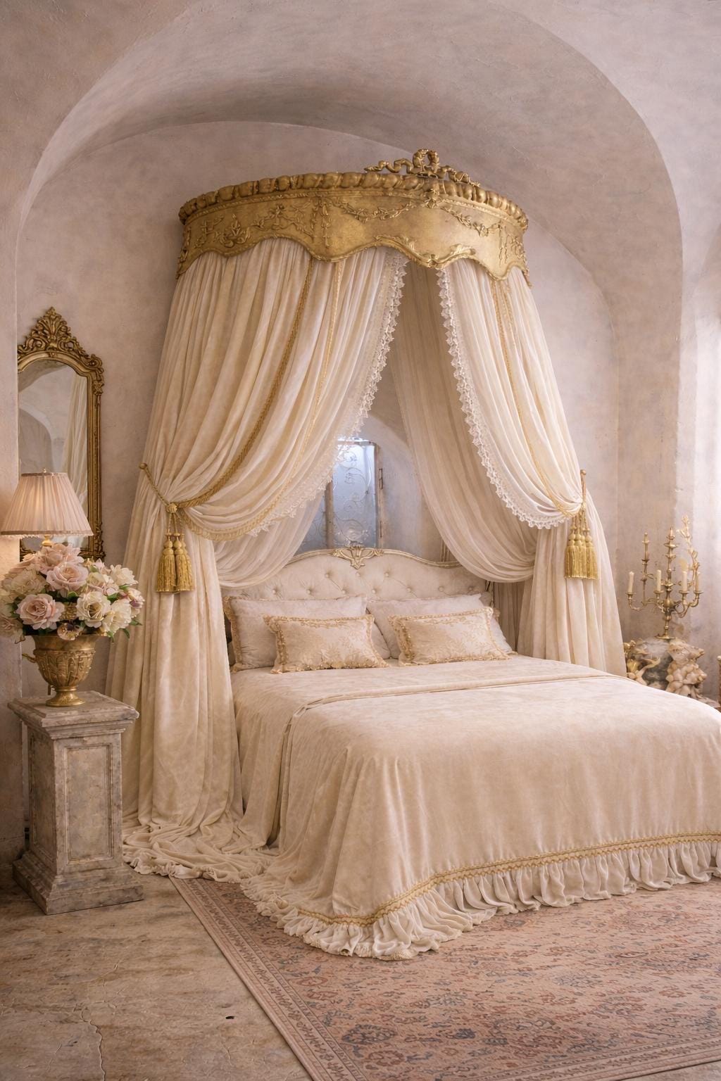 An exquisite bedroom set inspired by the noble chambers of historic European residences, handcrafted according to the finest artisanal tradition.