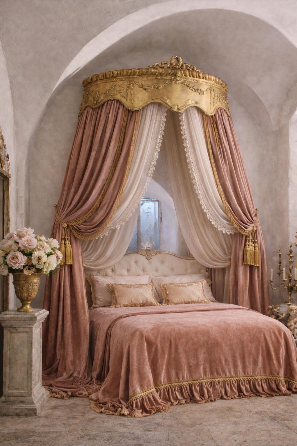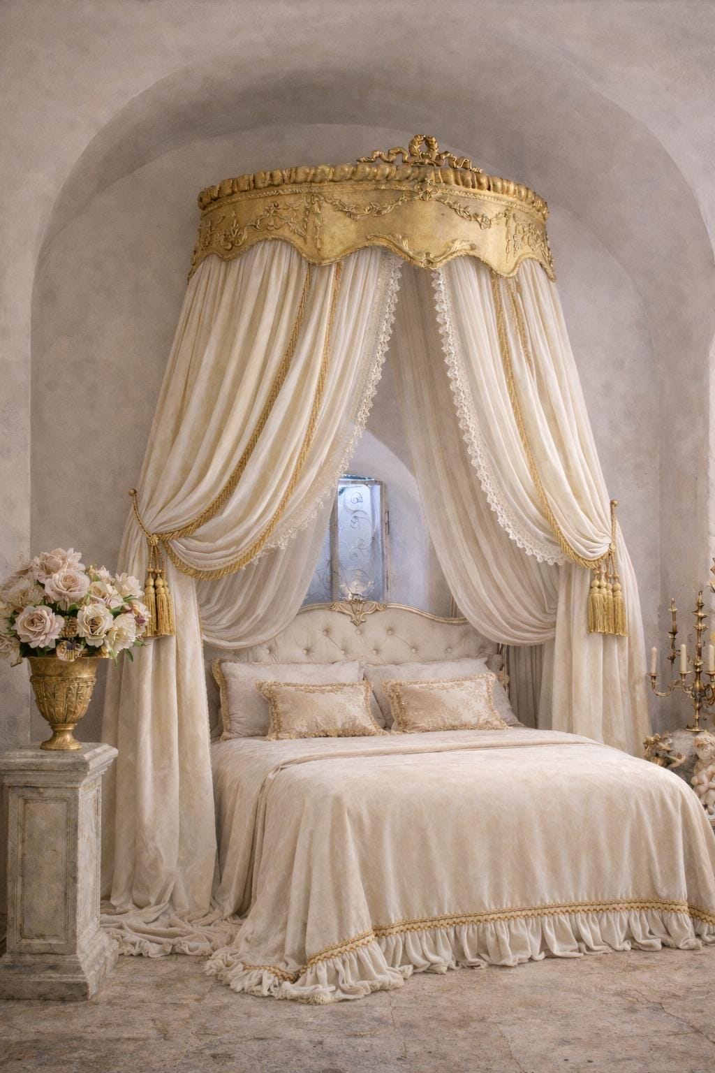 Designed for luxury, classical, romantic and aristocratic bedrooms, this set transforms the bed into a true architectural and decorative centerpiece.