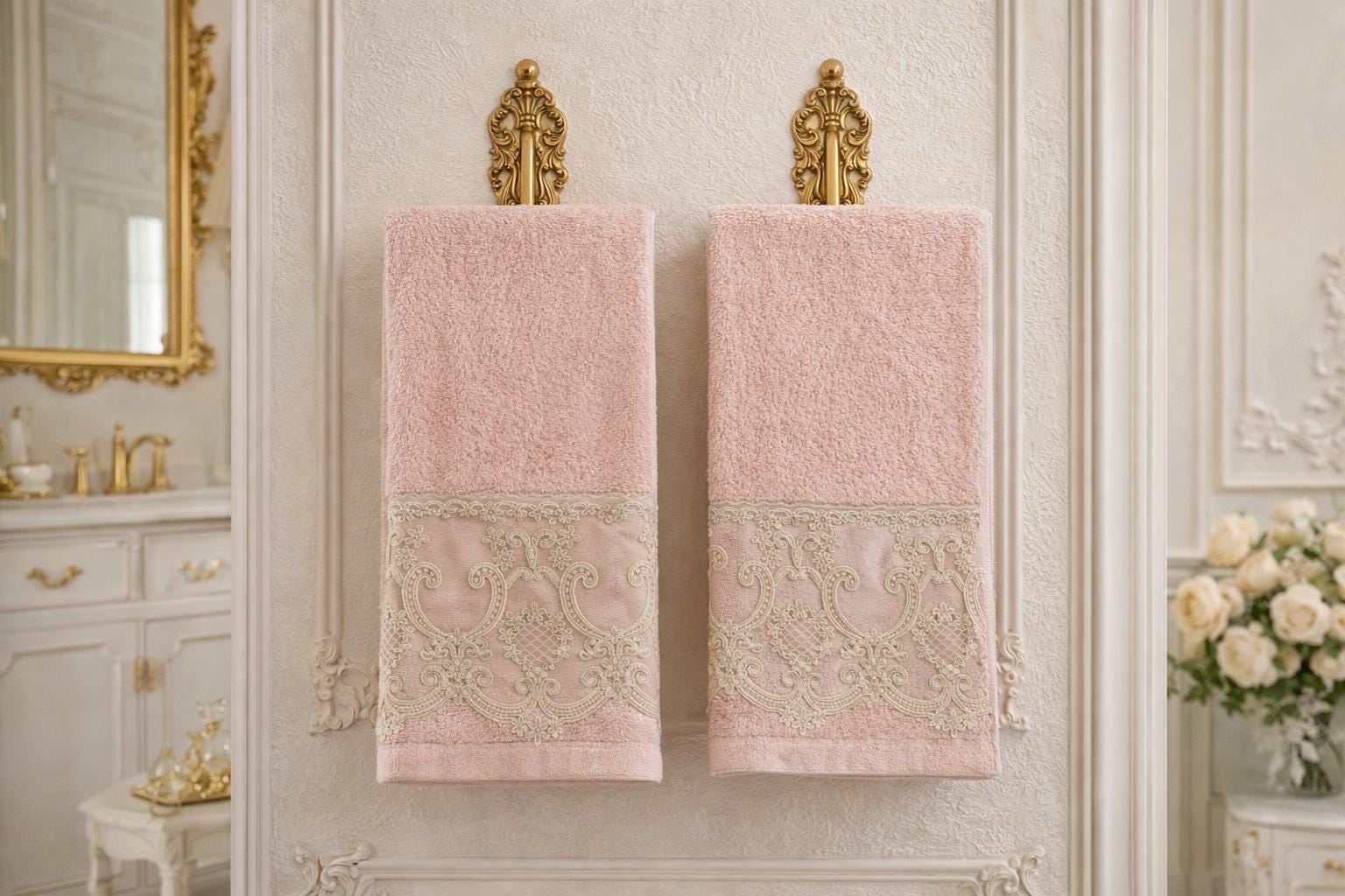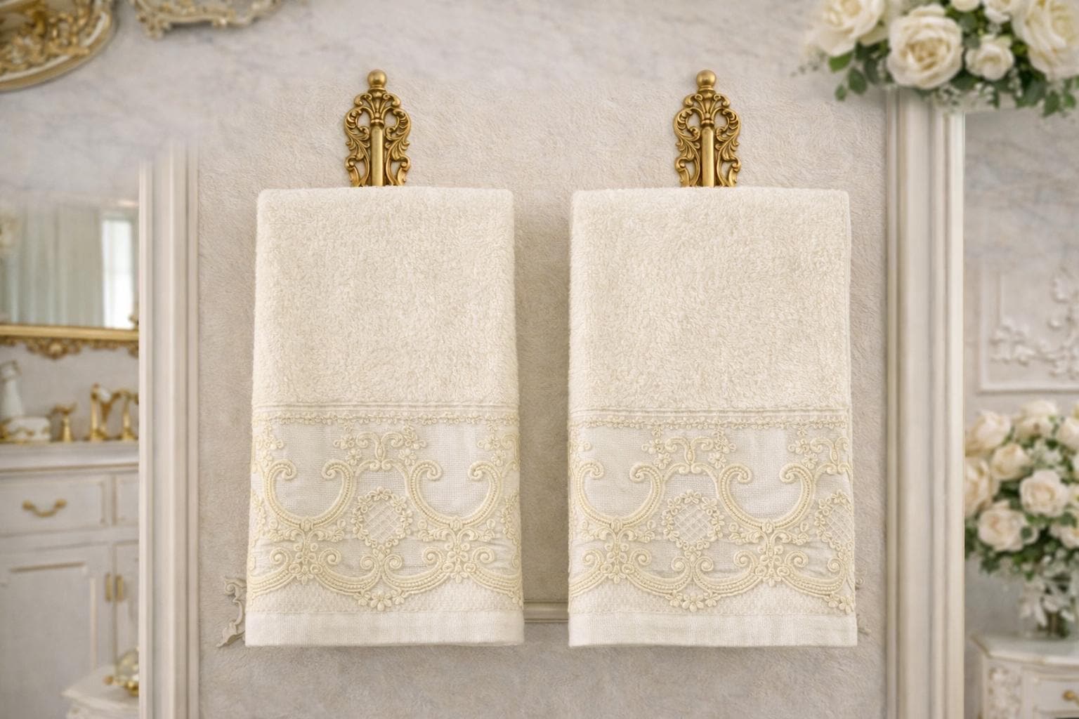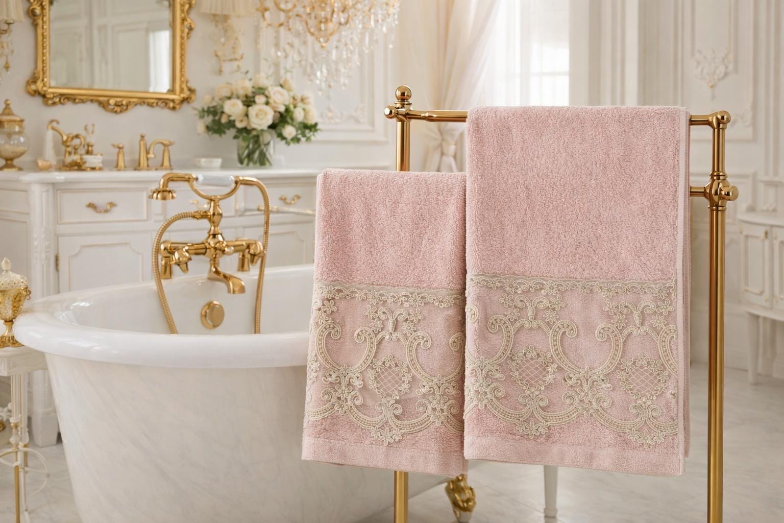 For a bathroom with a refined and elegant allure, focus on the delicate beauty of lace towels, bath linens that bring a touch of style and class to the room. These towels will be a breath of feminine elegance that your bathroom will never want to be without.
