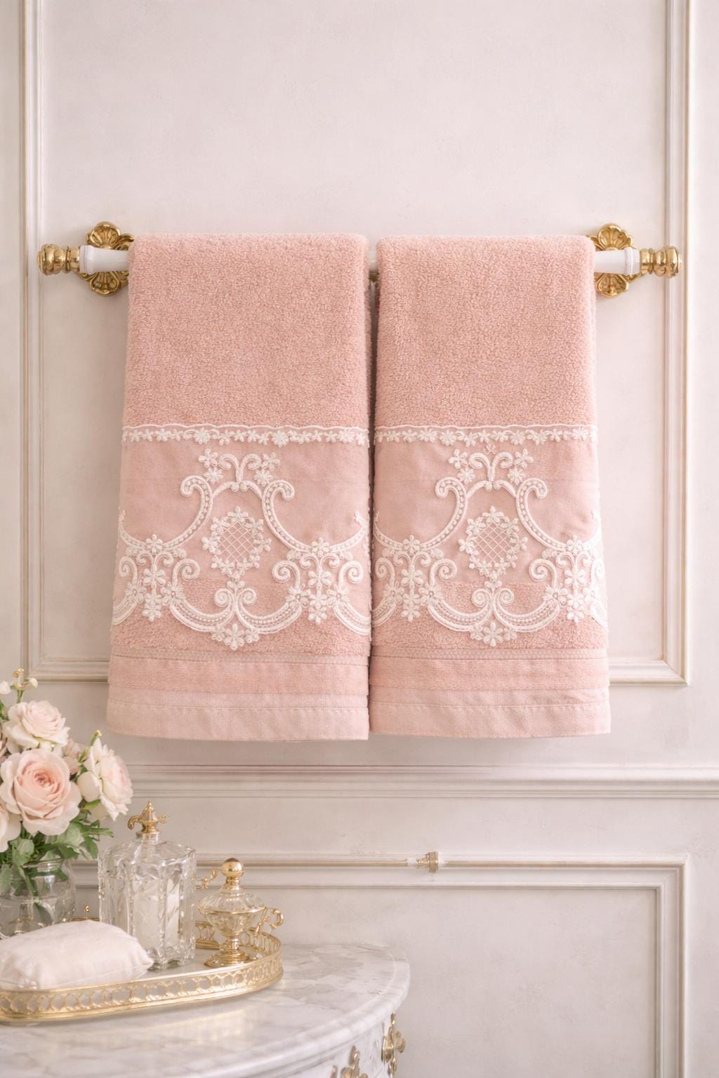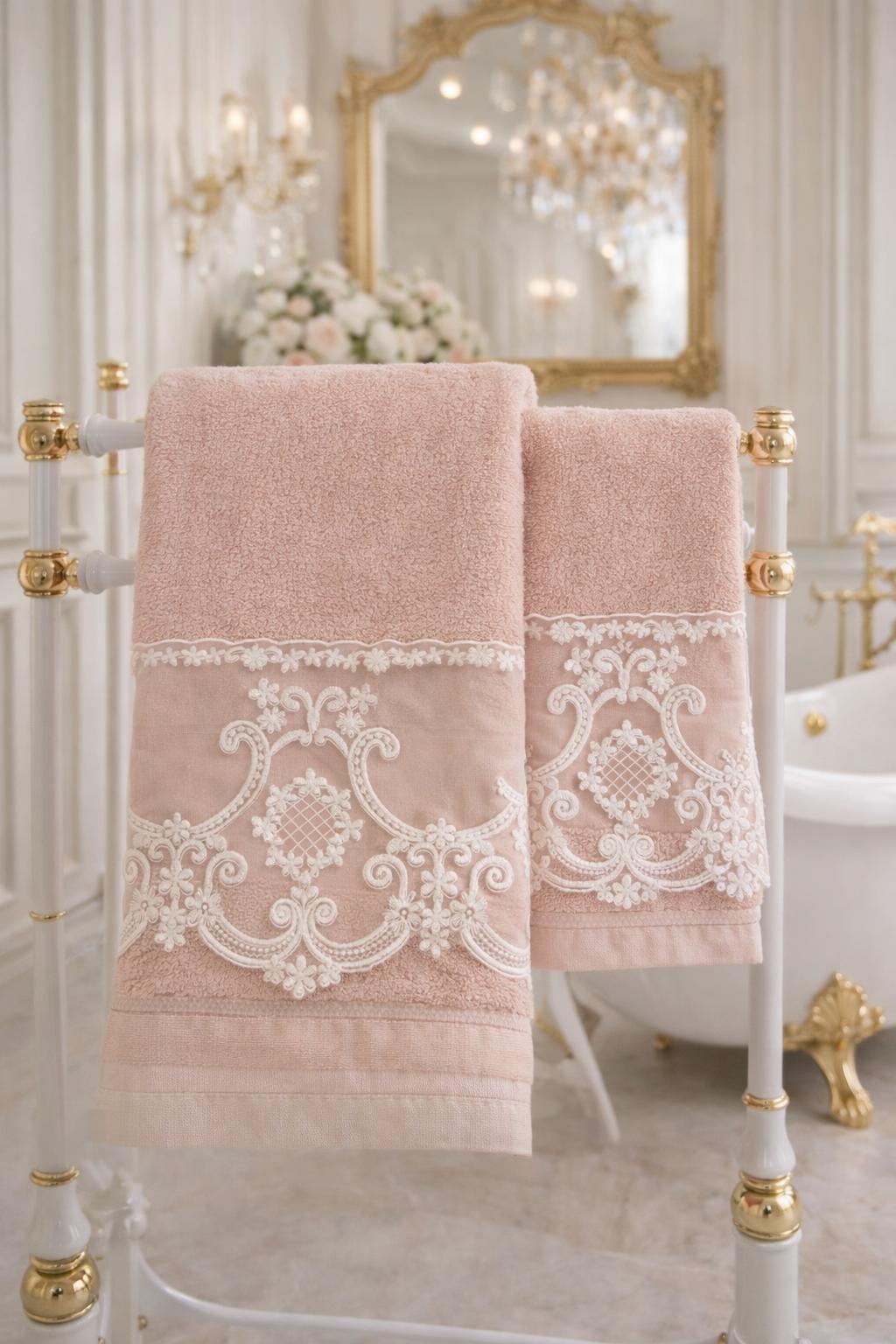 For a bathroom with a refined and elegant allure, focus on the delicate beauty of lace towels, bath linens that bring a touch of style and class to the room. These towels will be a breath of feminine elegance that will be a must-have in your bathroom. ATTENTION INTERNATIONAL CUSTOMERS: