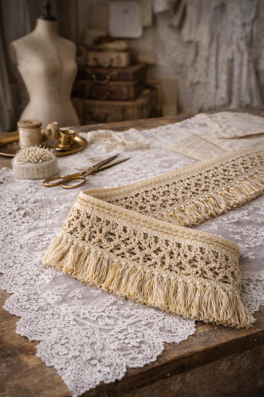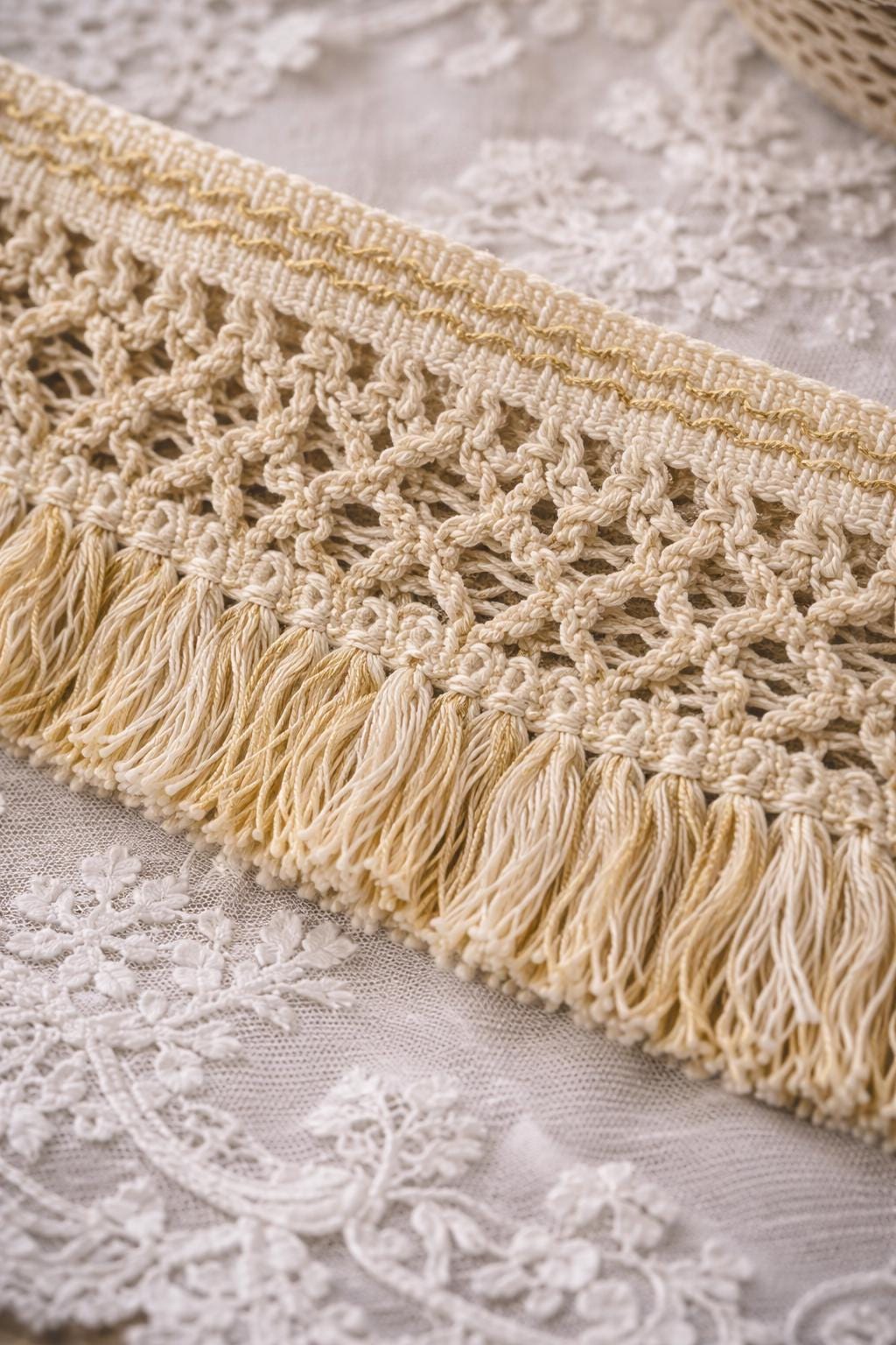 This cotton fringe trim, entirely Made in Italy, is a faithful reproduction of an antique 18th-century trim, restored and reinterpreted by a historic Italian company specializing in high-quality traditional workmanship, and created exclusively for our atelier.
