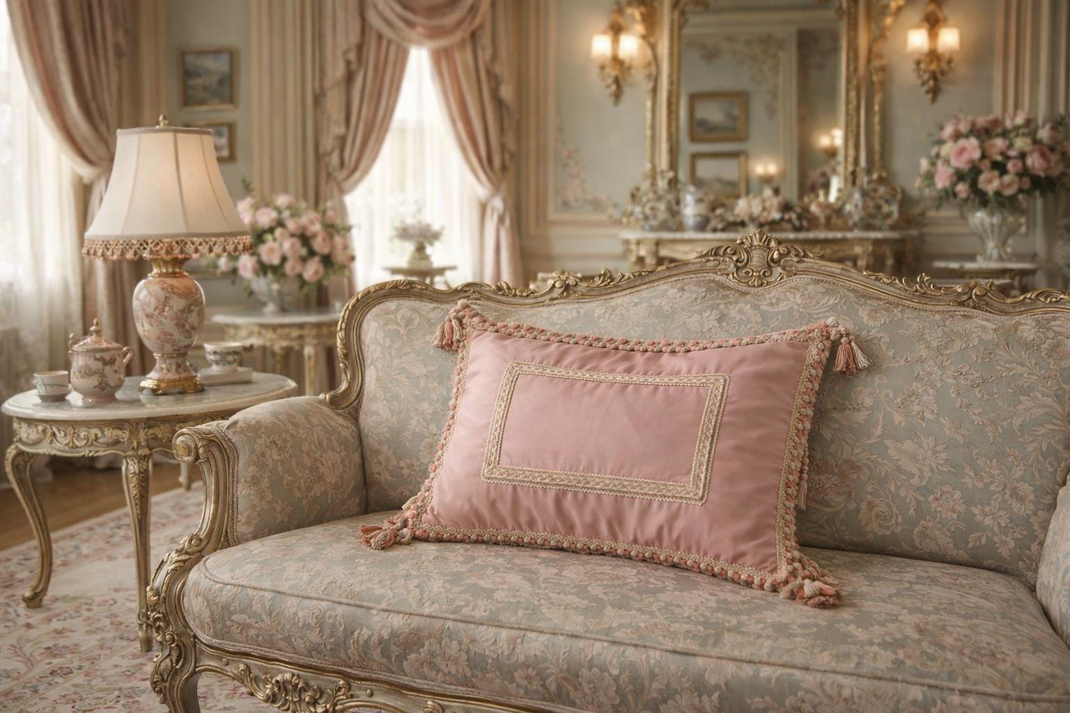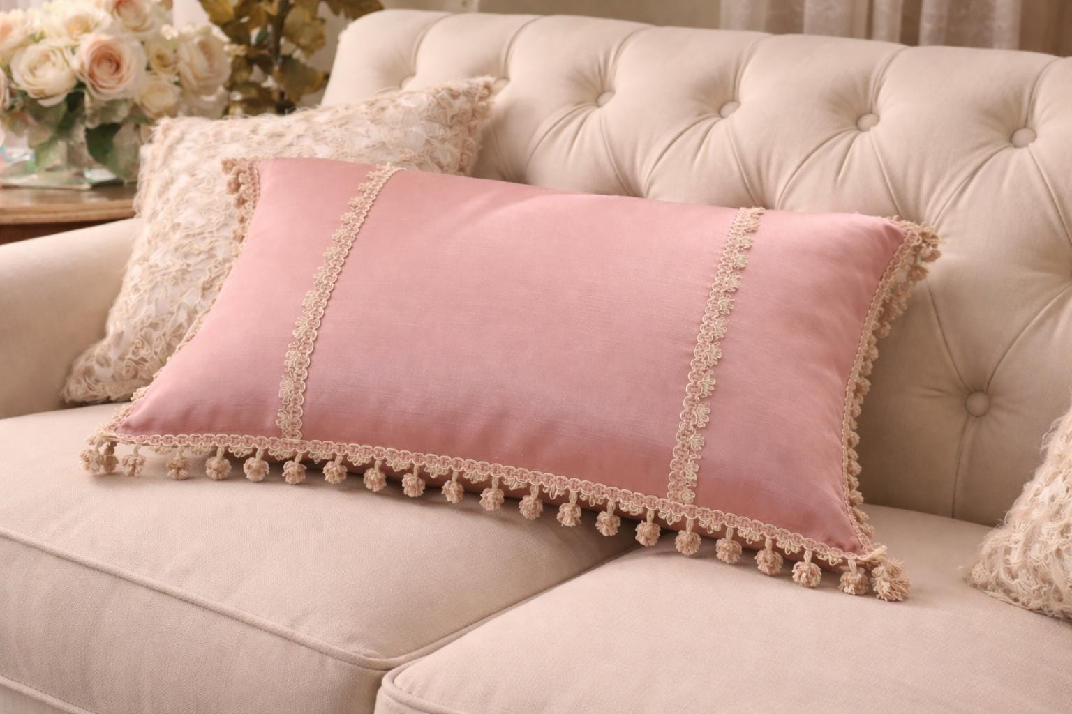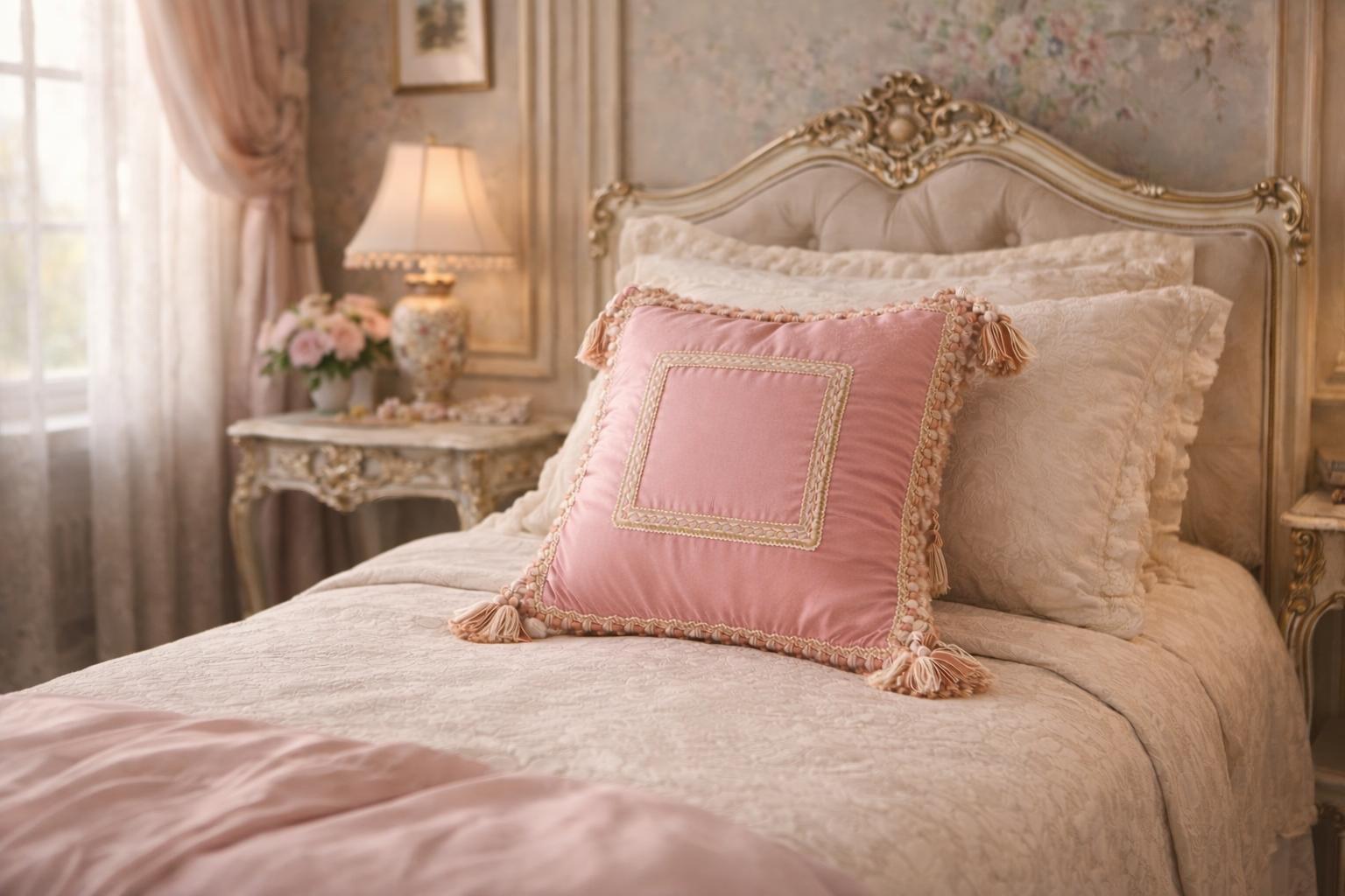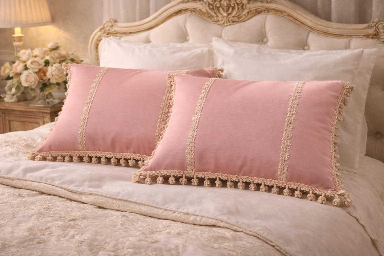 They are made of antique pink cotton satin and finished with precious Italian trimmings, applied by hand in our workshops according to a tradition of high-quality textile decoration.