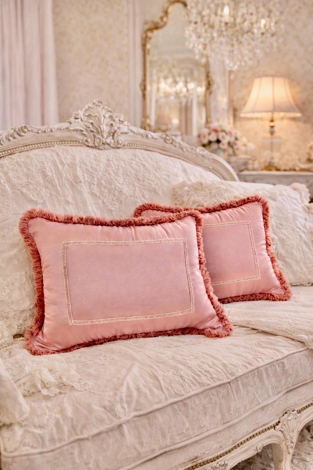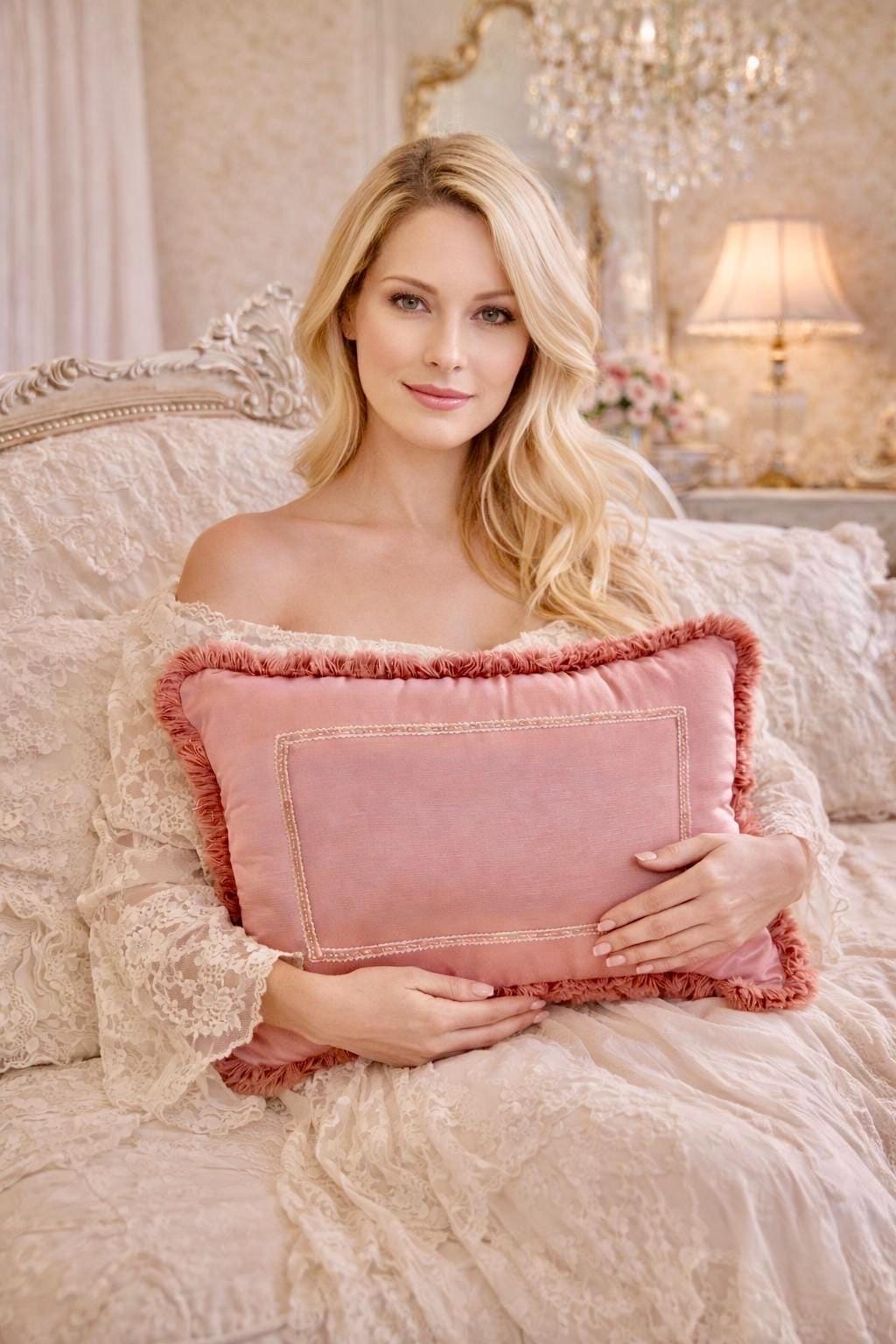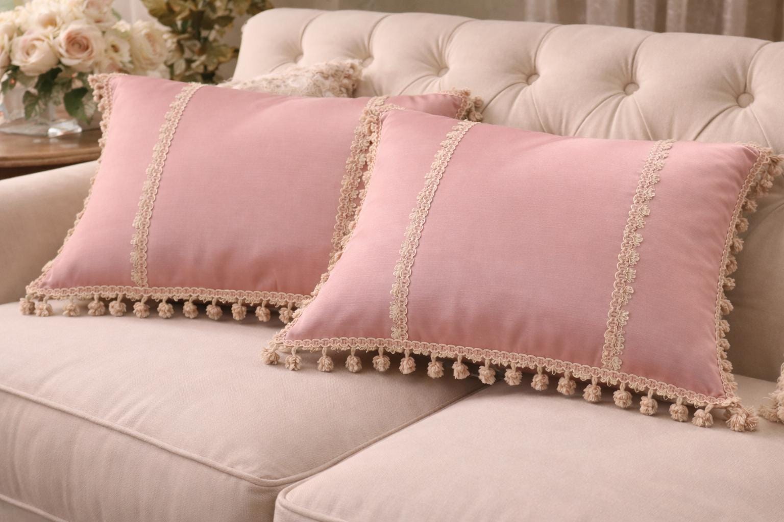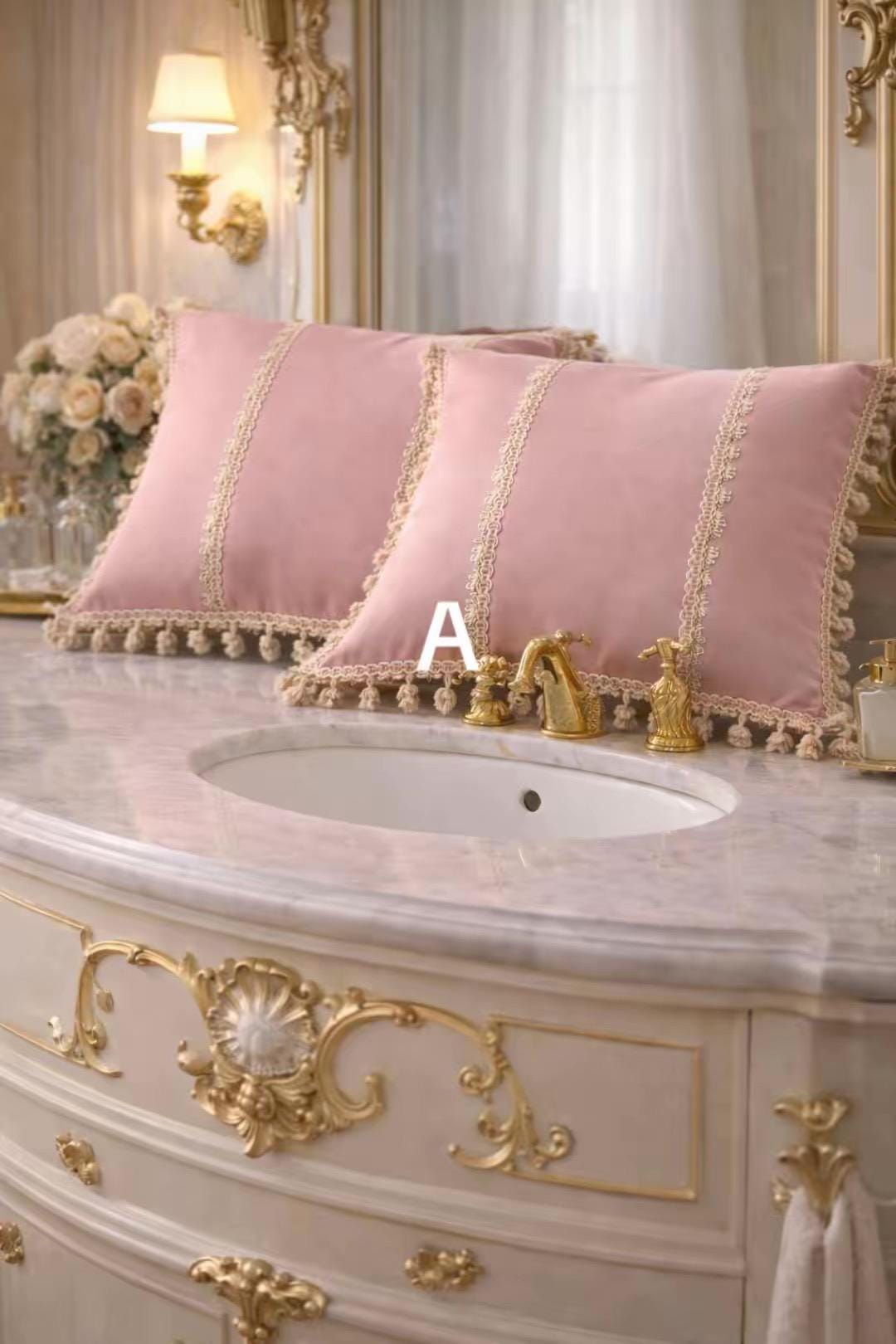 They are made of antique pink cotton satin and finished with precious Italian trimmings, applied by hand in our workshops according to a tradition of high-quality textile decoration.