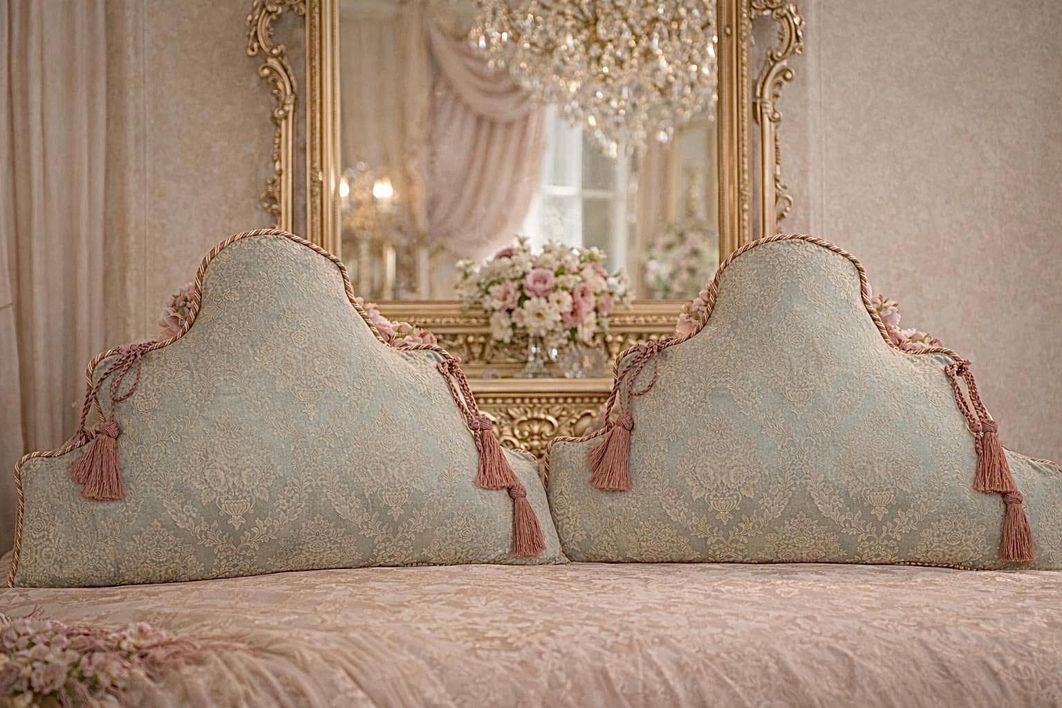 The Cartiglio cushion is a classically inspired decorative pillow, recognizable by its elegant shape with rolled edges reminiscent of the antique ornamental cartouches found in aristocratic palaces. It was conceived as a purely decorative element, designed to enhance beds, sofas, and armchairs in refined, Art Nouveau, and Old Money settings. Many customers choose to use the Cartiglio cushion as a headboard pillow, placing it behind the main bed cushions. Thanks to its decorative shape and padded structure, it becomes an elegant decorative element that enhances the headboard and instantly lends an aristocratic touch to the entire room.