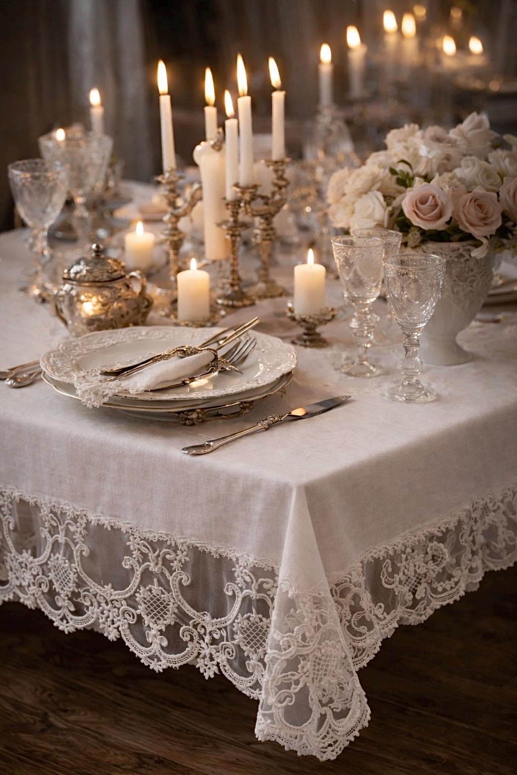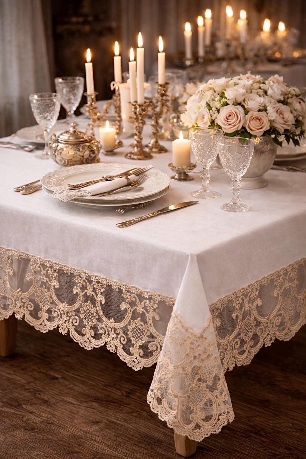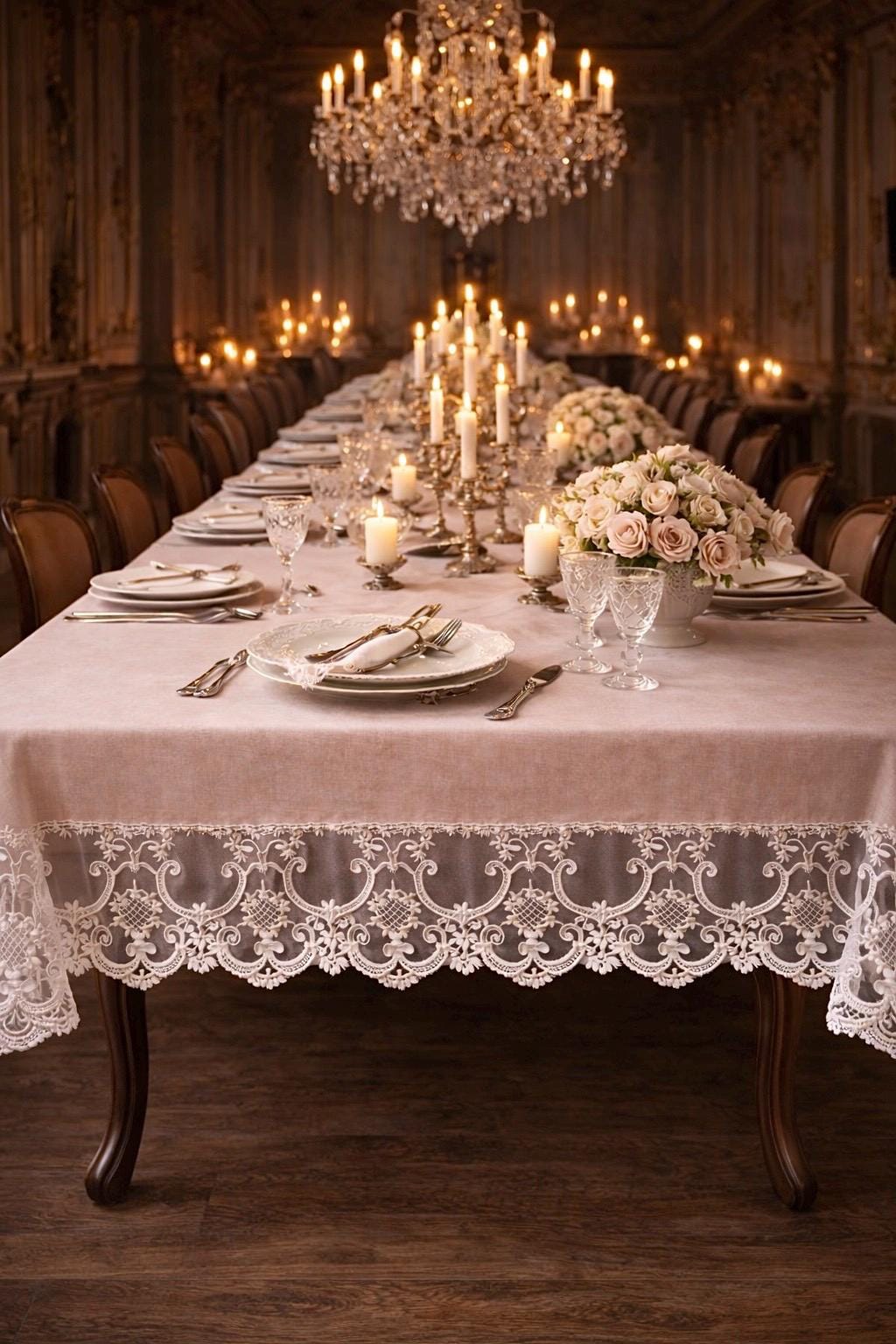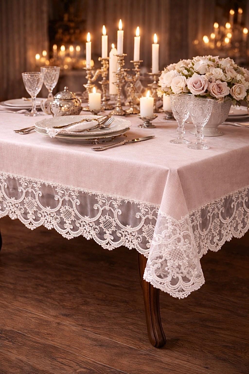È una tovaglia pensata per feste speciali, ricevimenti eleganti, anniversari e cene importanti, ma anche per chi desidera impreziosire la propria tavola quotidiana con un dettaglio sartoriale di alta qualità.