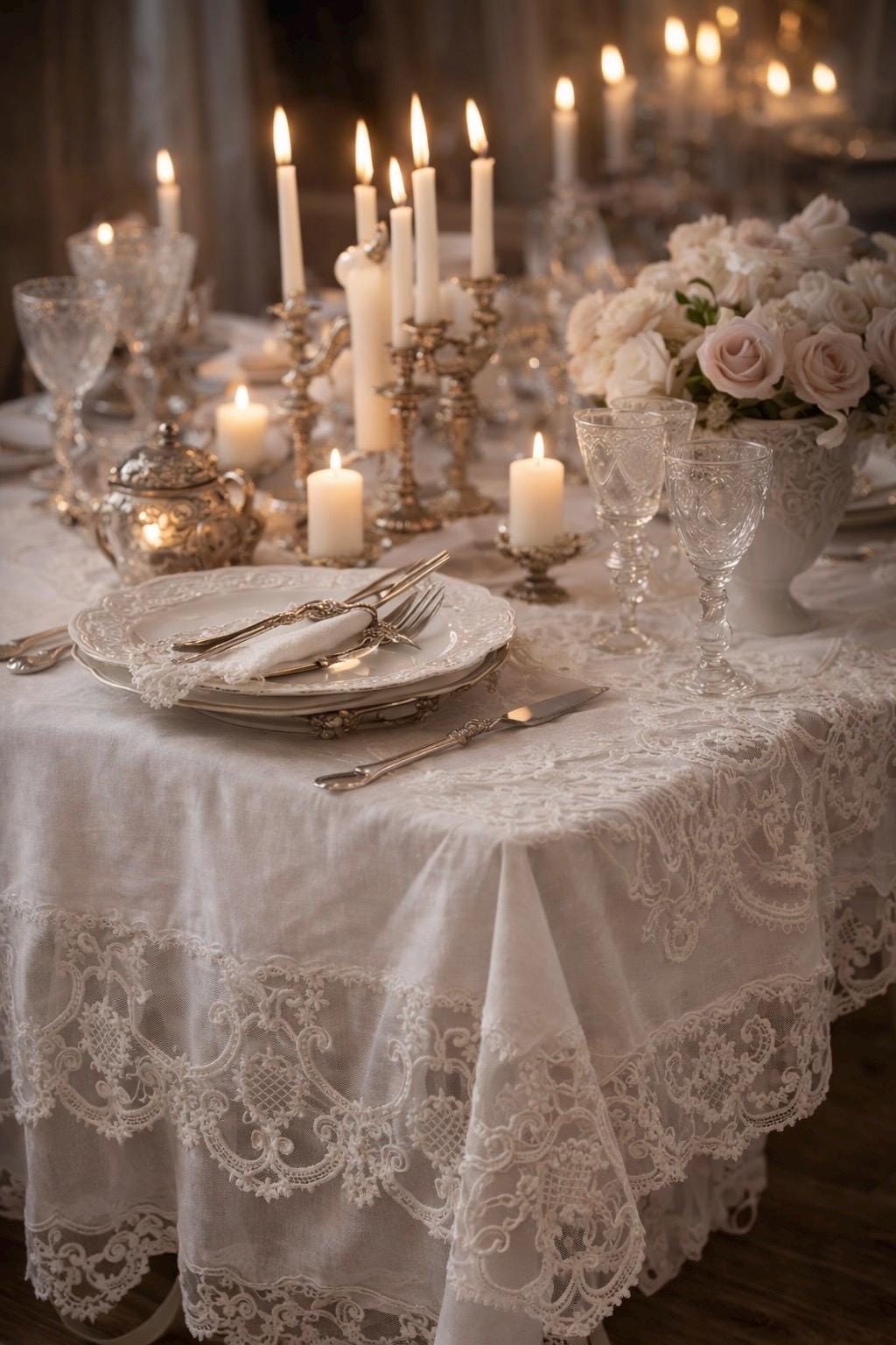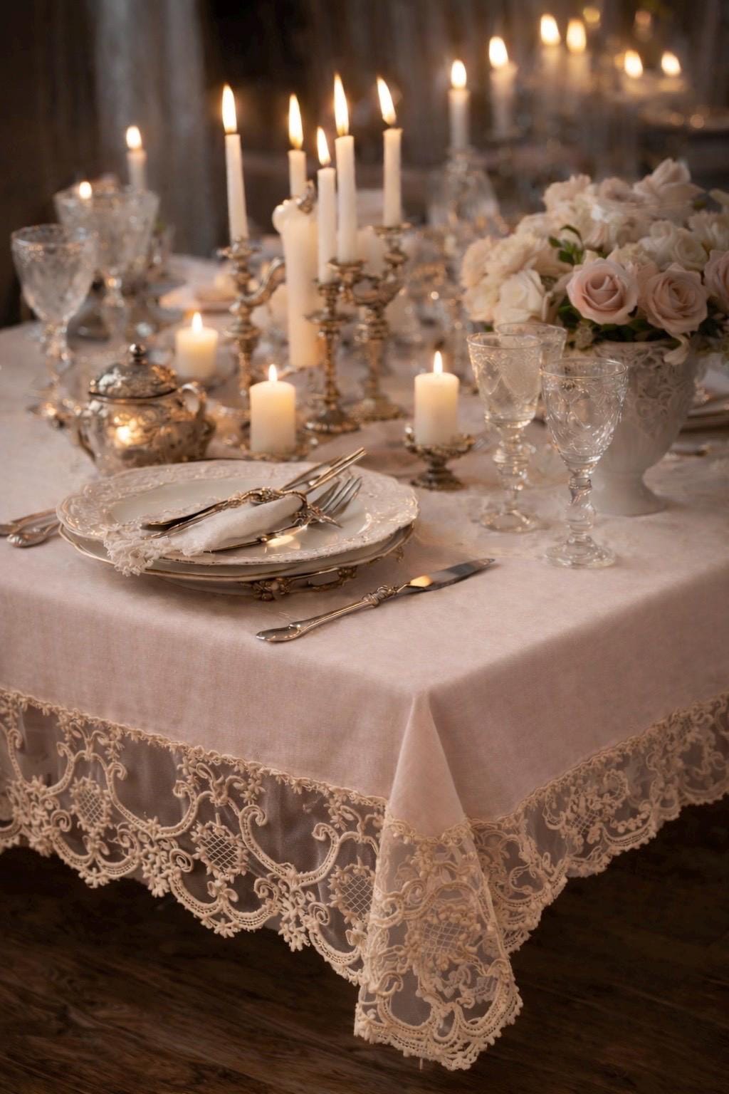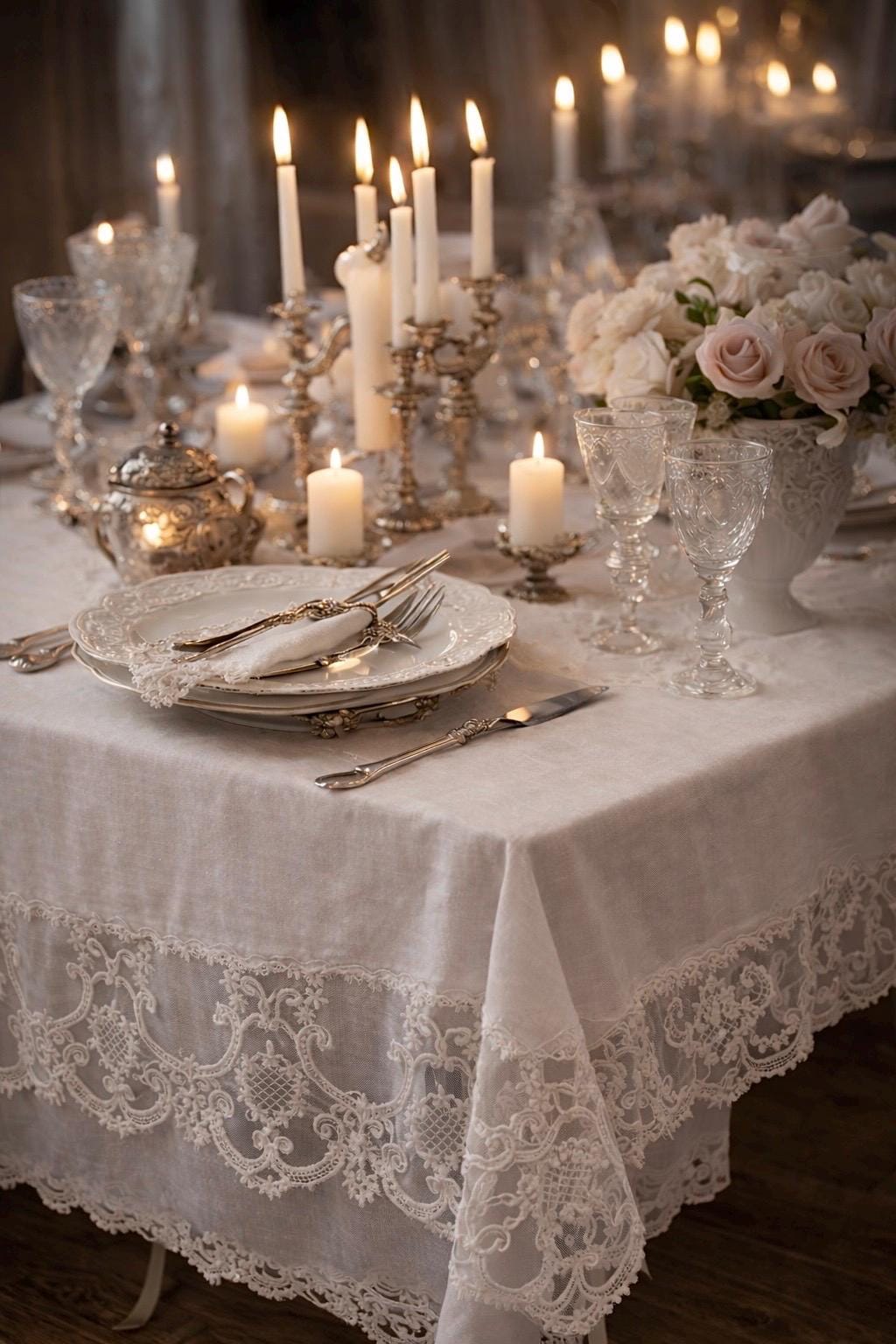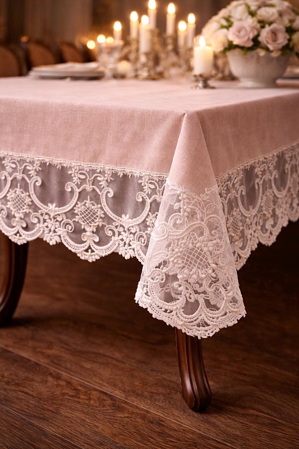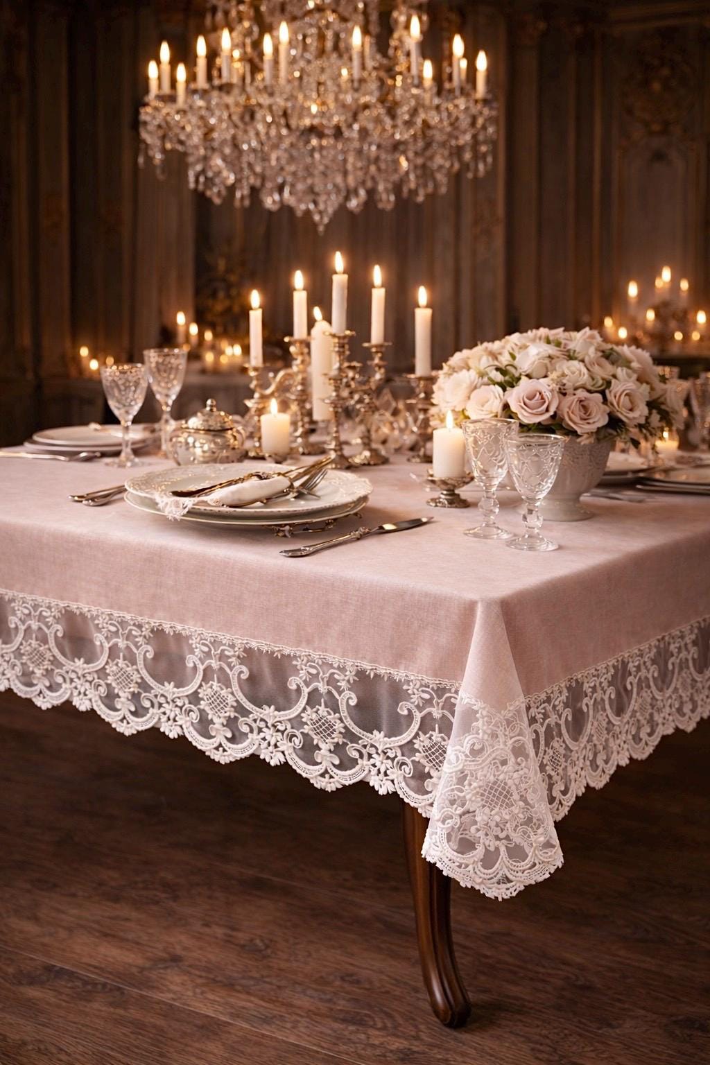 È una tovaglia pensata per feste speciali, ricevimenti eleganti, anniversari e cene importanti, ma anche per chi desidera impreziosire la propria tavola quotidiana con un dettaglio sartoriale di alta qualità.