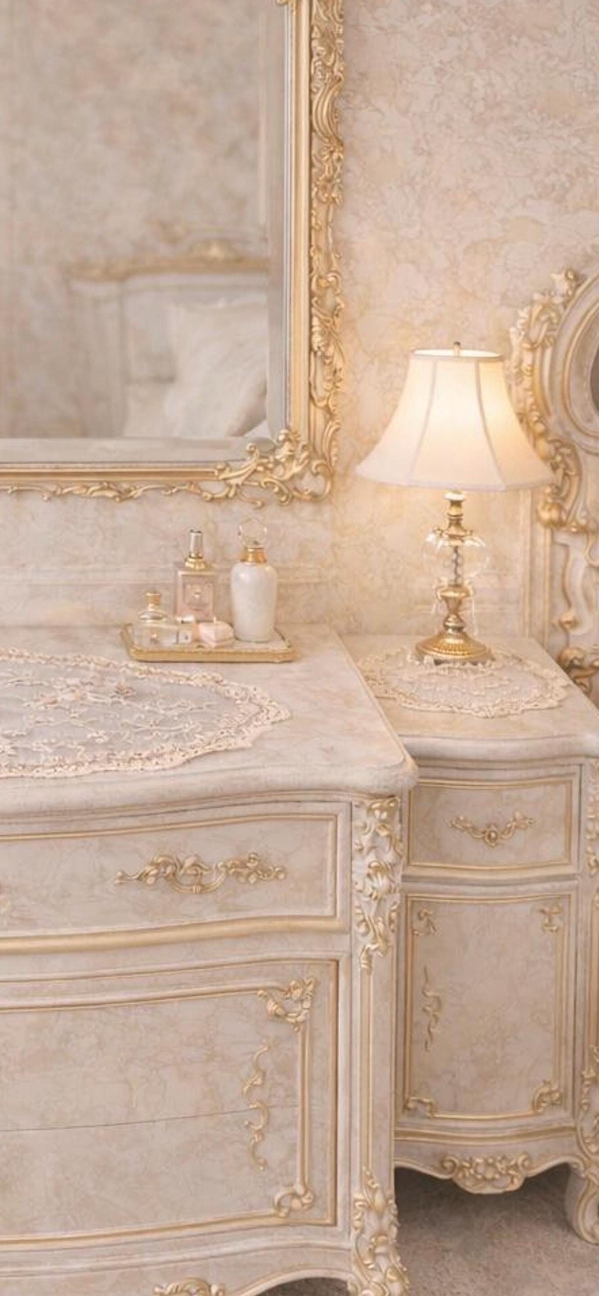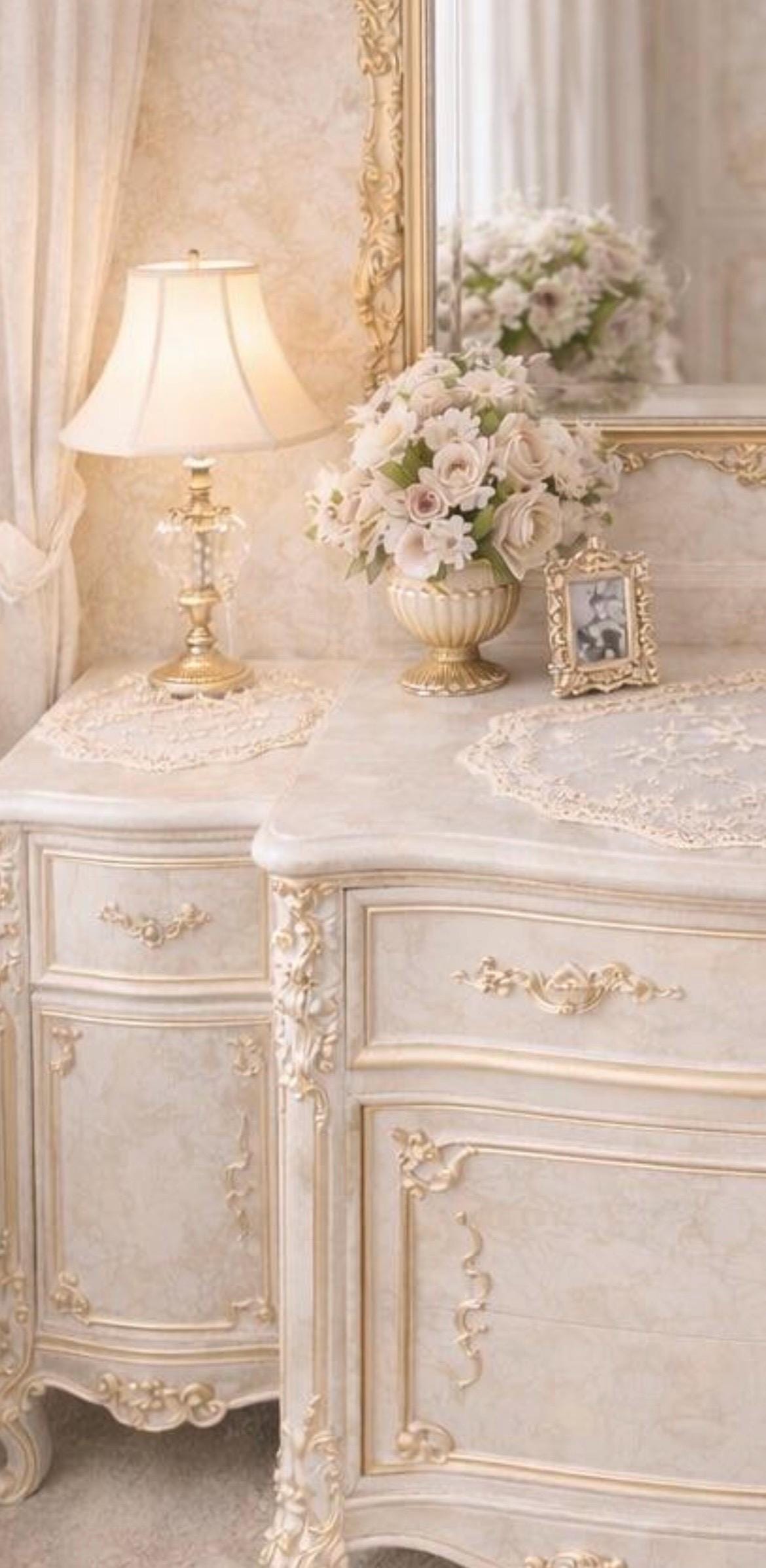 a large doily for the dresser and two smaller doilies for the nightstands.