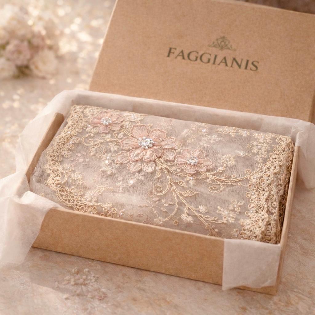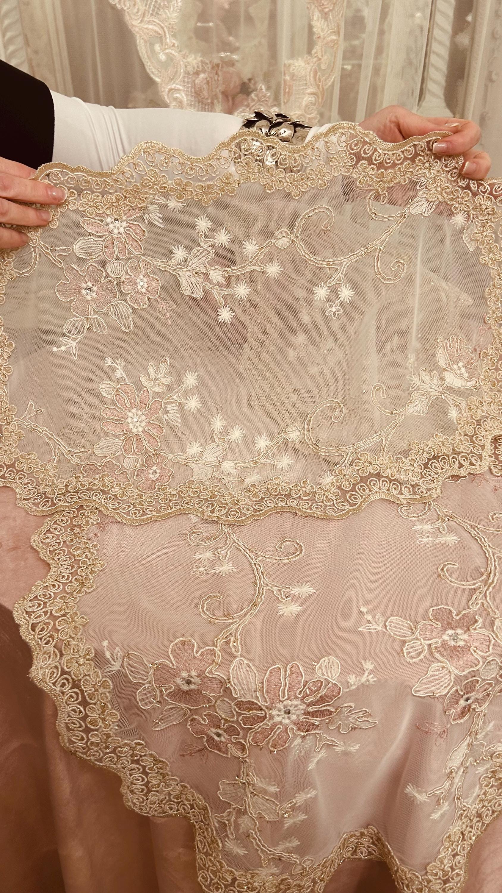 Each set is carefully packaged in our artisanal atelier, ready to become a special gift. It's a perfect gift for a mother, a bride, or anyone who loves to surround themselves with refined and romantic objects. A small textile jewel that brings the delicacy of lace, the sparkle of golden embroidery, and the sweetness of pink flowers into your home.