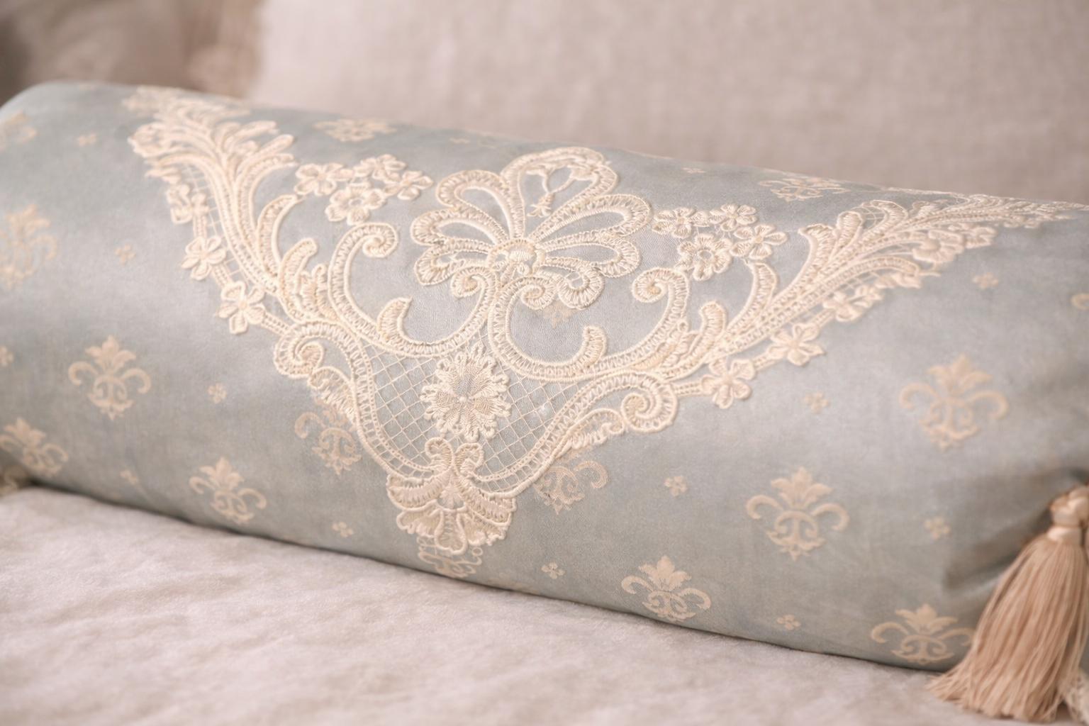 Featuring neutral, delicate tones, this elegant and precious cushion is handmade in our tailoring workshops.