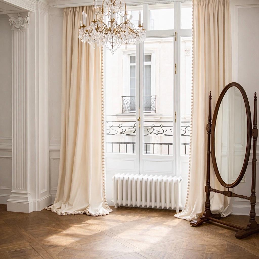 Curtains. Please don't hesitate to contact us for any information. These curtains are entirely handmade in our workshops. Production takes approximately 4–5 business days from ordering. Because each piece is tailor-made to order, unfortunately, exchanges or returns are not possible.